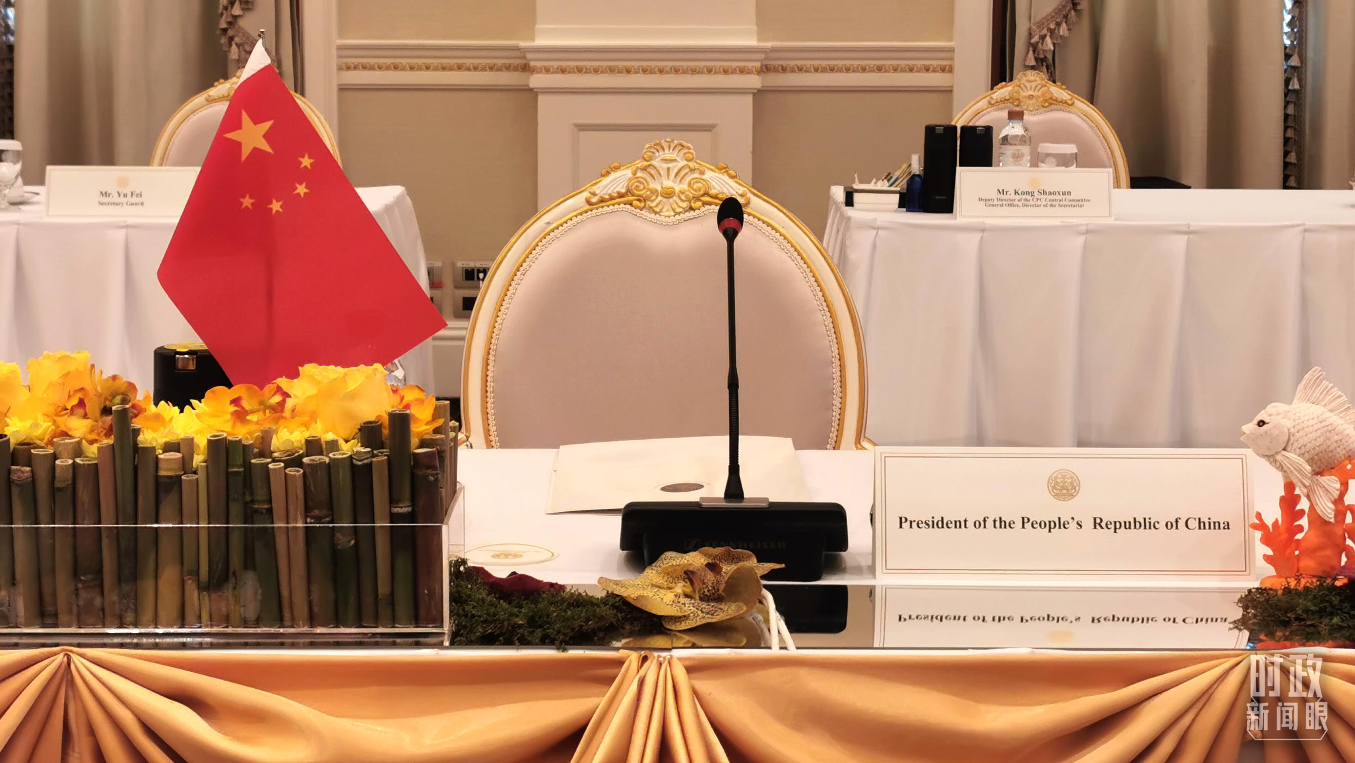 △會談現(xiàn)場,習(xí)近平在這里發(fā)言。(總臺央視記者黃京輝拍攝)