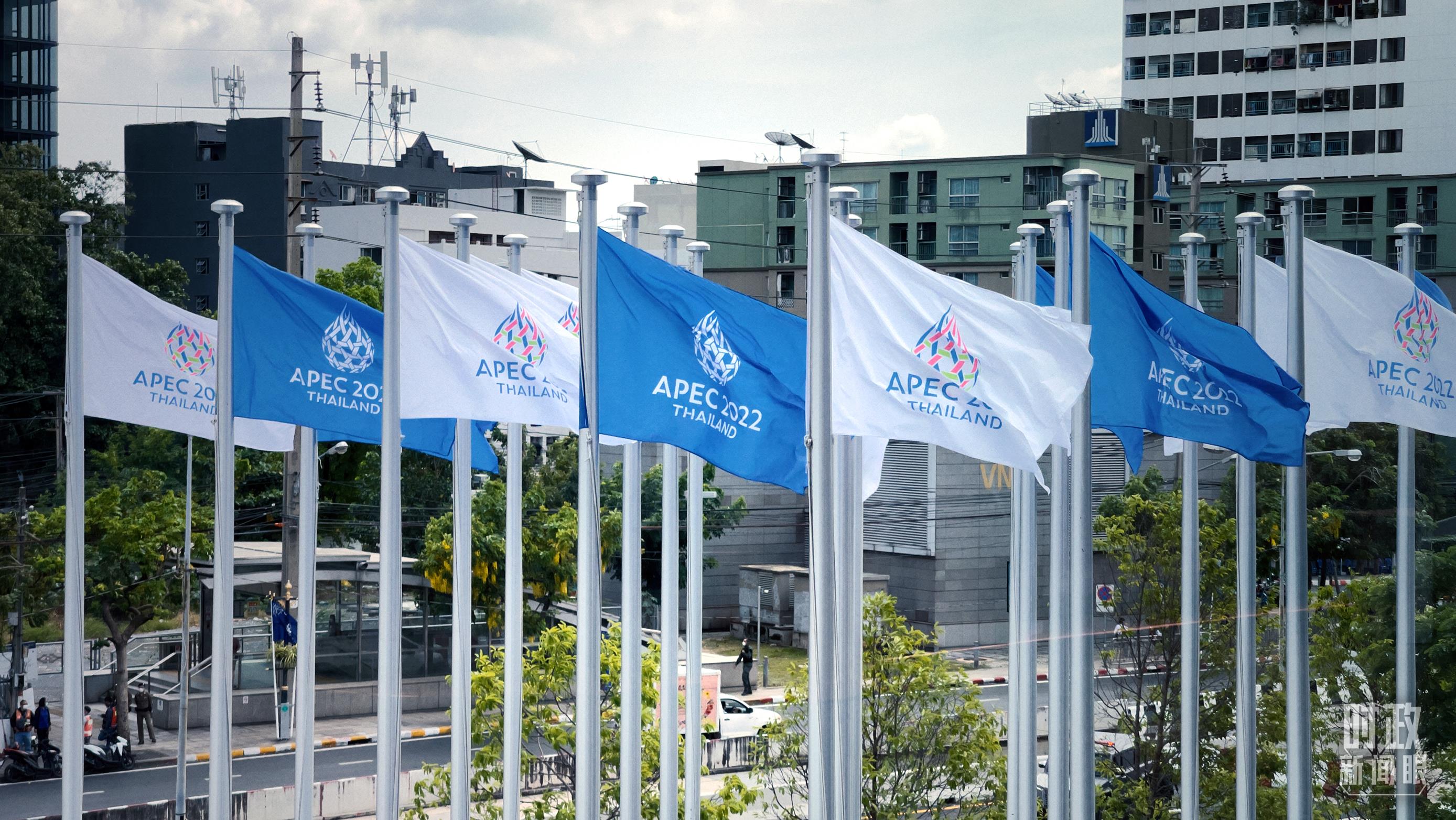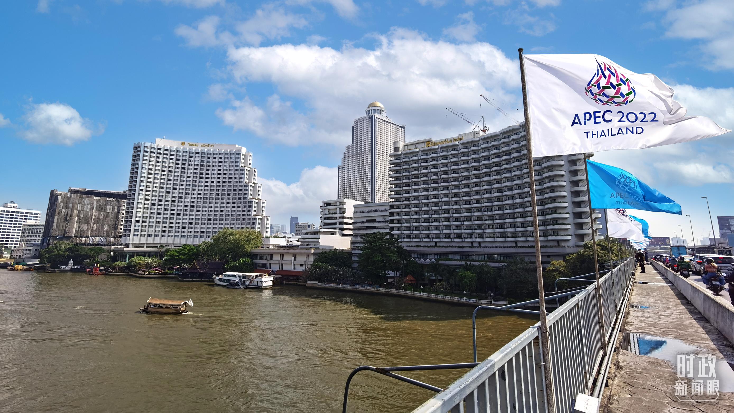 △曼谷,APEC會旗在空中飄揚(yáng)。(總臺央視記者鄂介甫拍攝)