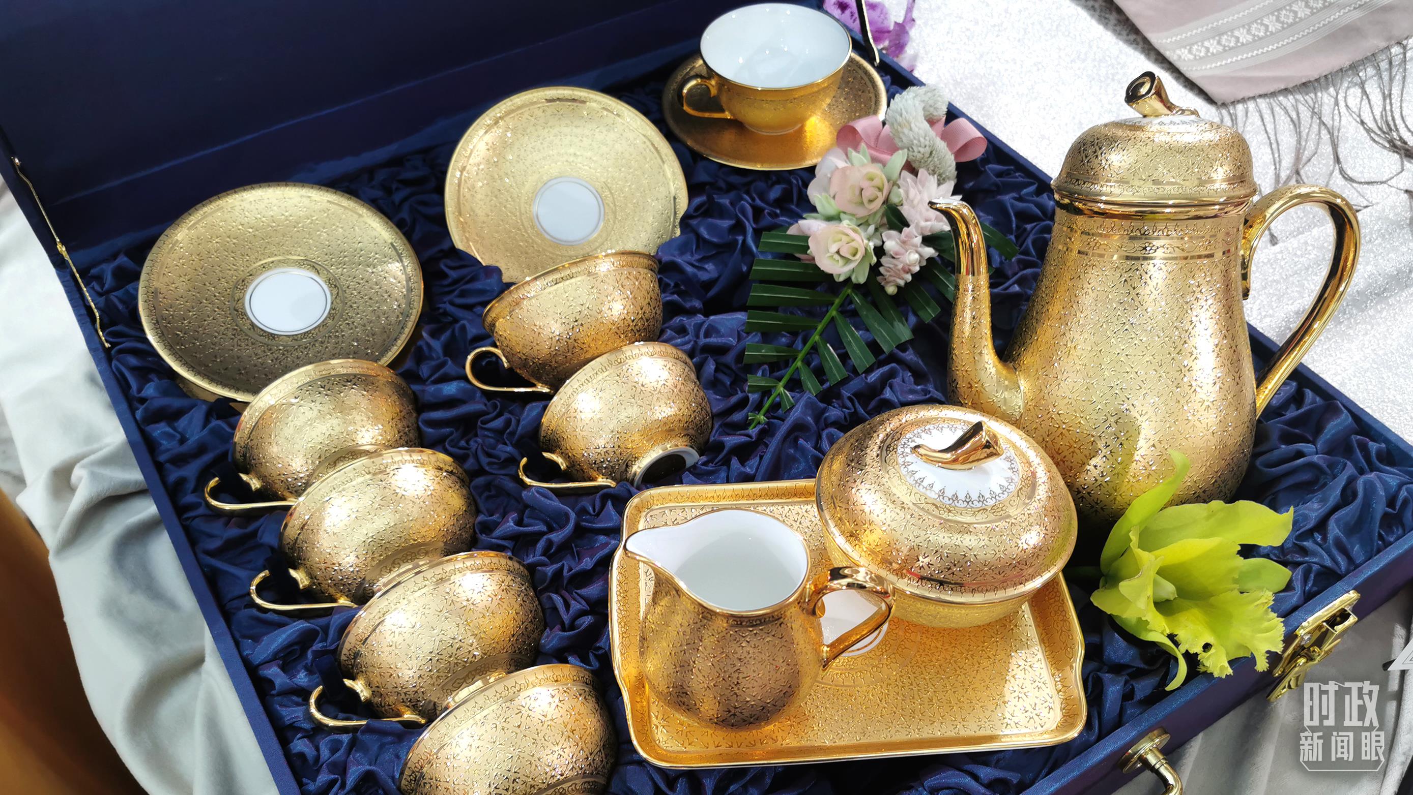 △這是巴育送給習(xí)近平的國禮之一,鎏金浮雕紋茶具。茶具采用泰國傳統(tǒng)的五彩瓷工藝制作。(總臺央視記者黃京輝拍攝)