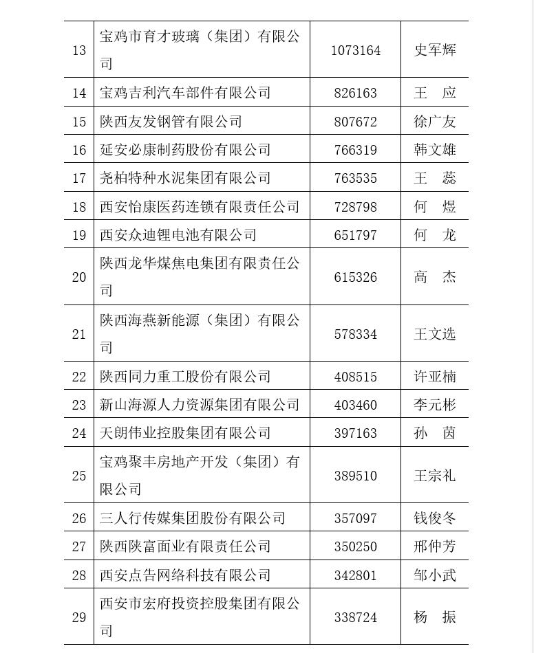 附件二:2022陜西民營企業(yè)50強(qiáng)排序名單