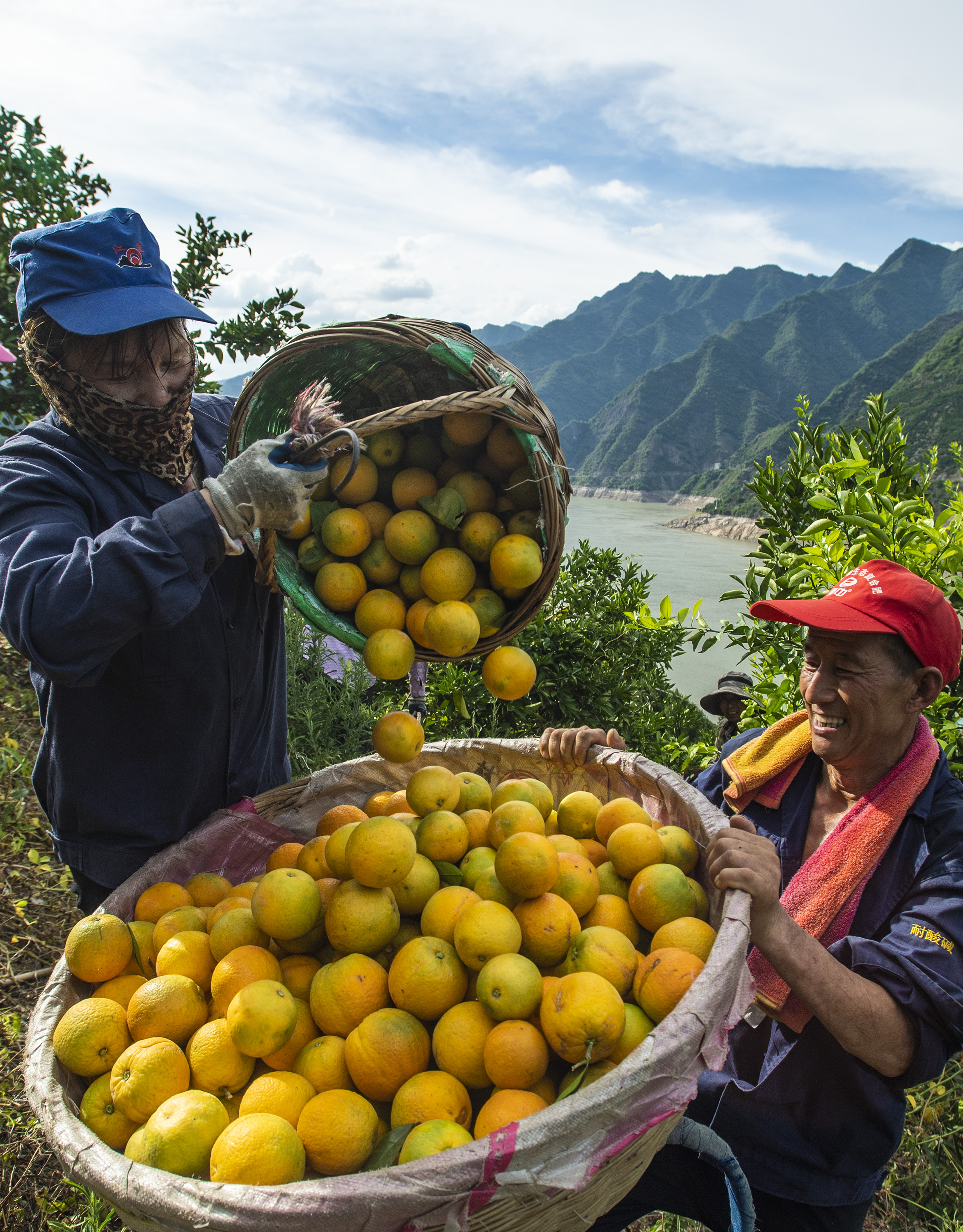 湖北省宜昌市秭歸縣沙鎮(zhèn)溪鎮(zhèn)臺(tái)子灣村村民在柑橘園里轉(zhuǎn)運(yùn)夏橙(2022年6月21日攝)。新華社發(fā)(鄭家裕 攝)