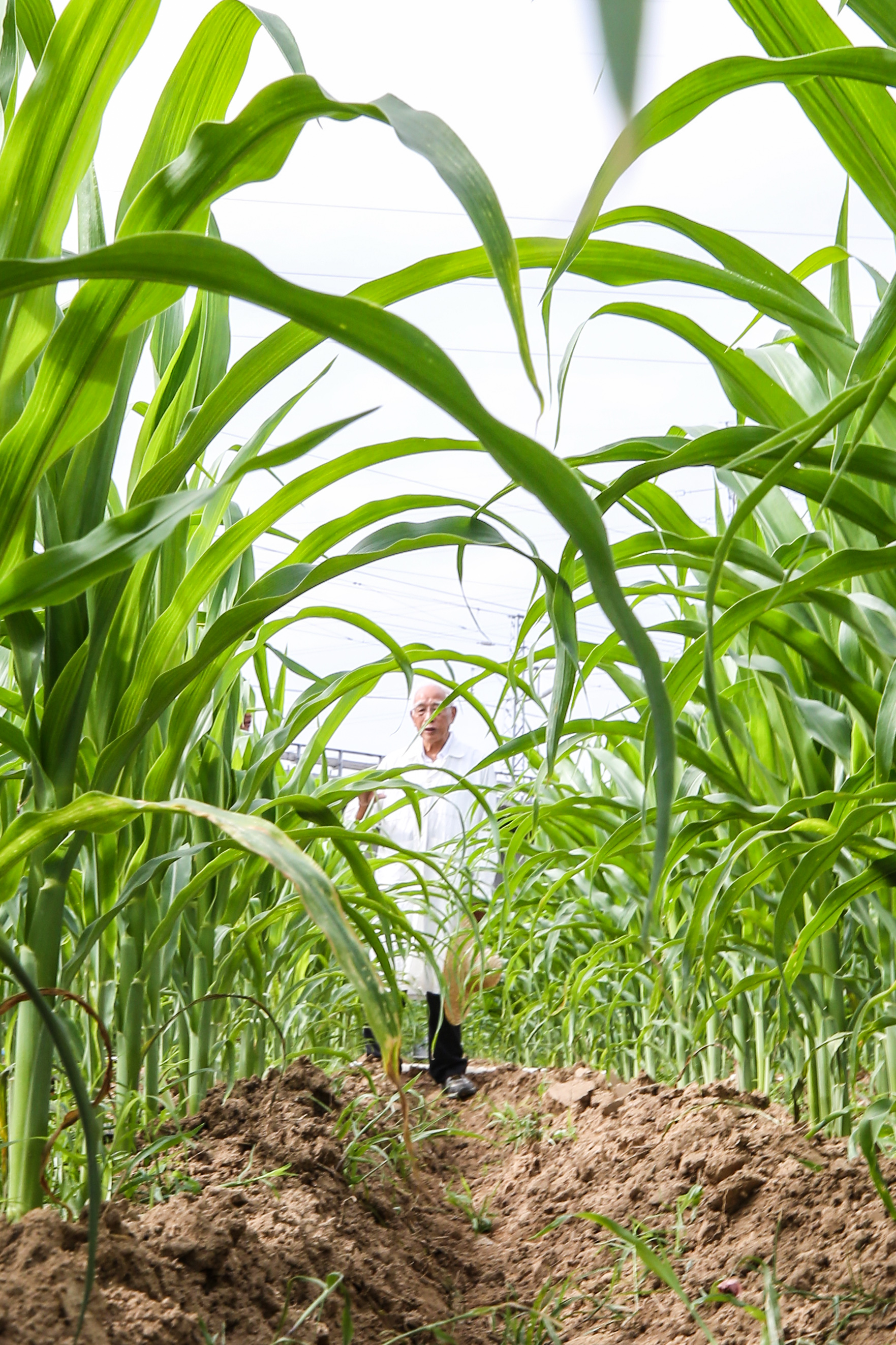 玉米育種專家程相文在海南三亞南繁科研育種基地觀察玉米生長情況(2022年12月15日攝)。新華社記者 張麗蕓 攝
