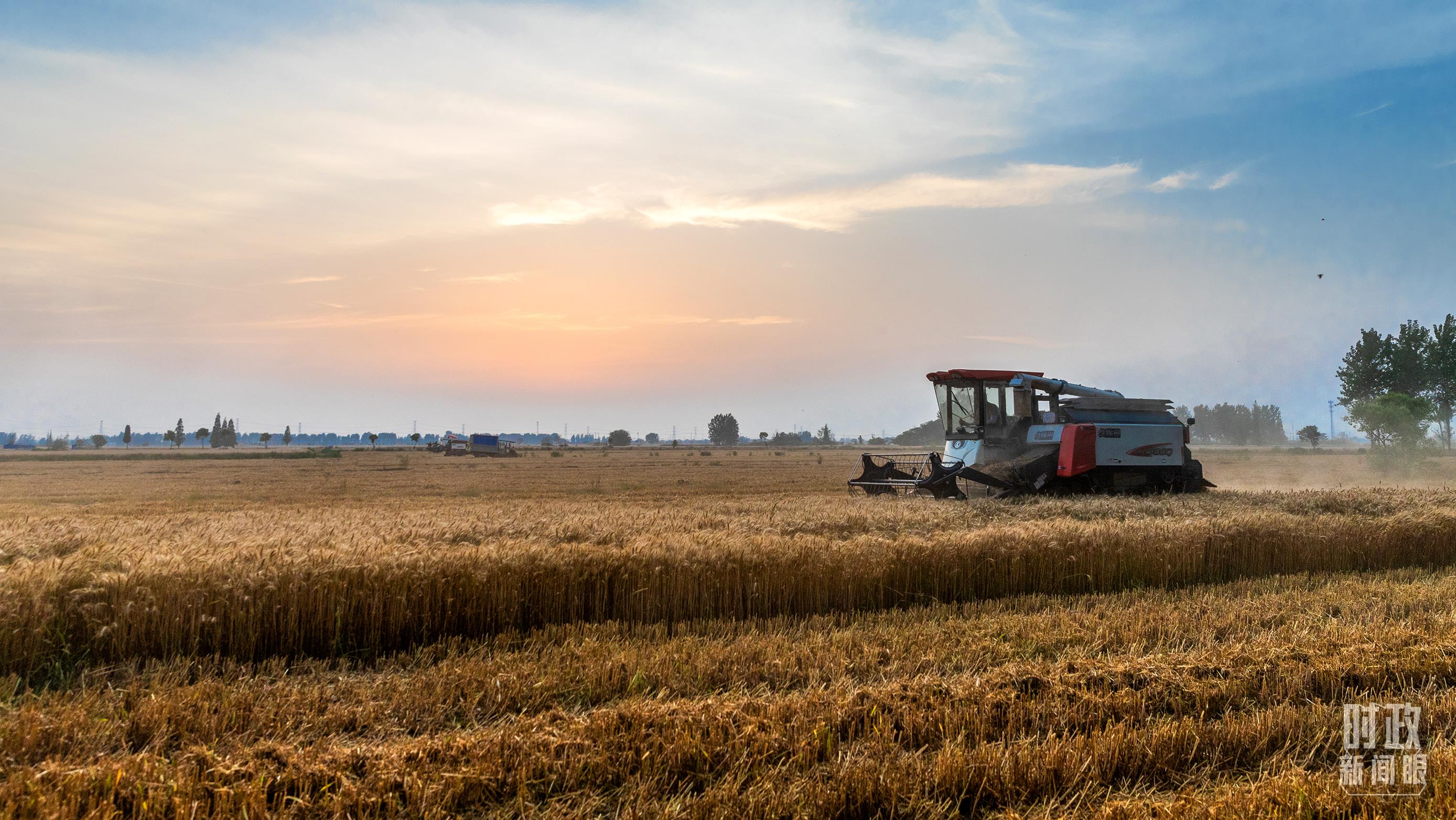 △位于河南省黃河河畔的麥田成熟,聯(lián)合收割機正在收割作業(yè)。(圖/視覺中國)