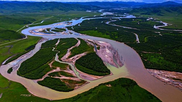 將目光收回,可以看見(jiàn)不少如小島的丘狀高原浮于河中。九曲第一灣島嶼眾多,