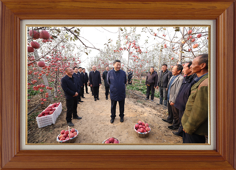 10月26日下午,習近平總書記在陜西省延安市安塞區(qū)高橋鎮(zhèn)南溝村蘋果園同老鄉(xiāng)們親切交流。