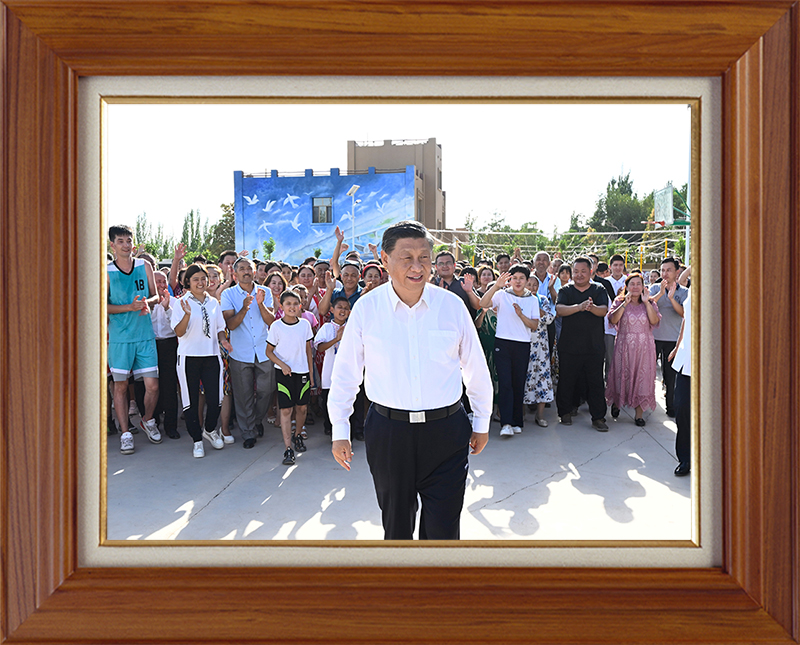 7月14日,習近平總書記在新疆吐魯番市高昌區(qū)亞爾鎮(zhèn)新城片區(qū)新城西門村考察時,同各族群眾在一起。