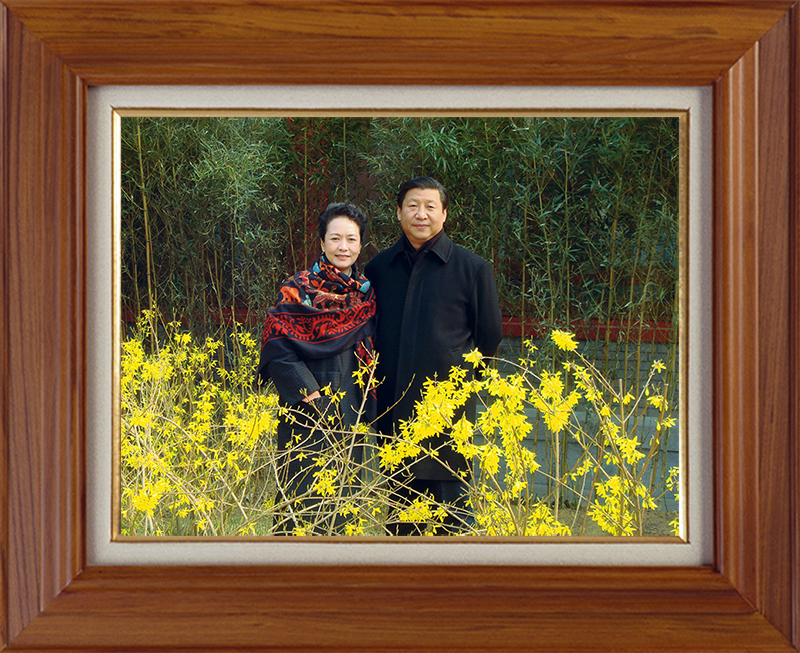 今年,書架上又增加了習近平總書記同夫人彭麗媛和女兒的合影。
