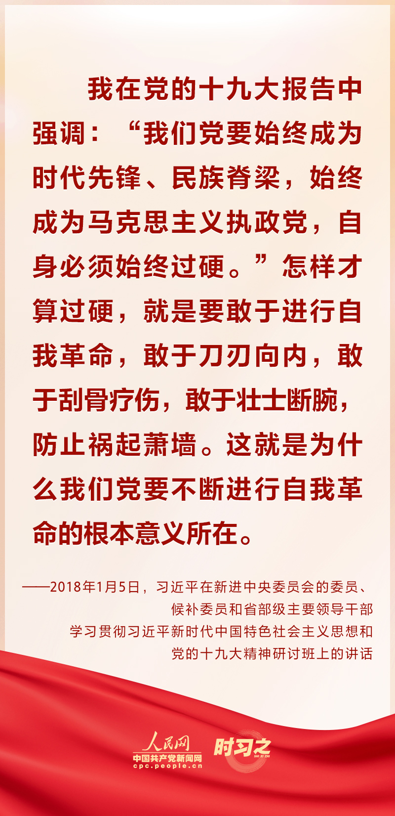 2023年1月9日上午,中共中央總書記、國家主席、中央軍委主席習(xí)近平在中國共產(chǎn)黨第二十屆中央紀律檢查委員會第二次全體會議上發(fā)表重要講話。習(xí)近平在講話中強調(diào)要“發(fā)揚徹底的自我革命精神”“把黨的偉大自我革命進行到底”。一直以來,習(xí)近平多次在重要場合對“自我革命”這個重要課題進行深入闡釋,一起學(xué)習(xí)領(lǐng)悟。