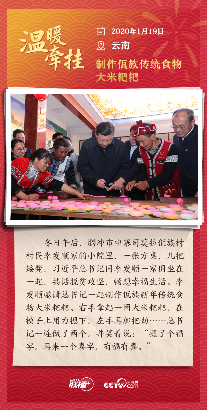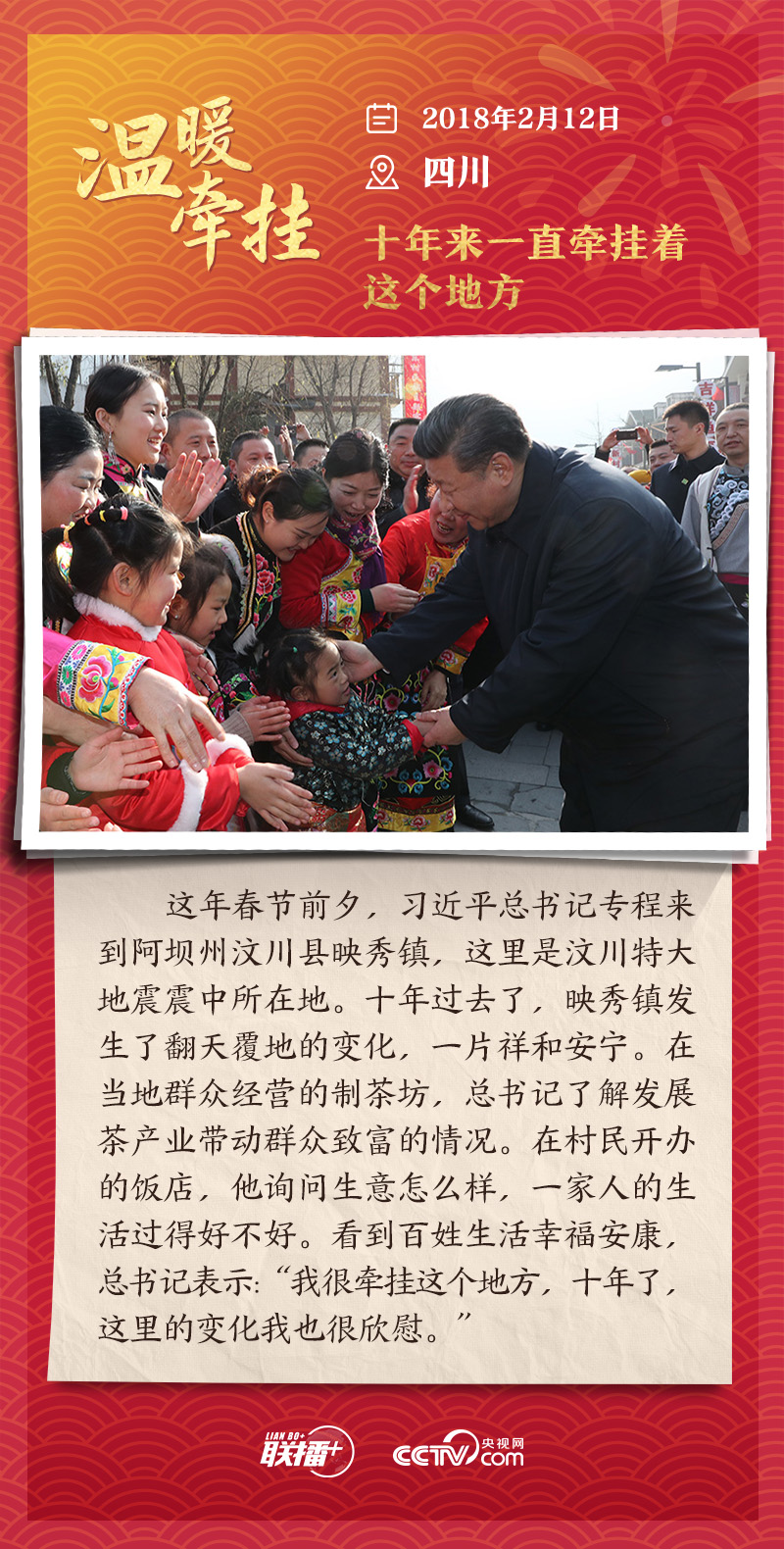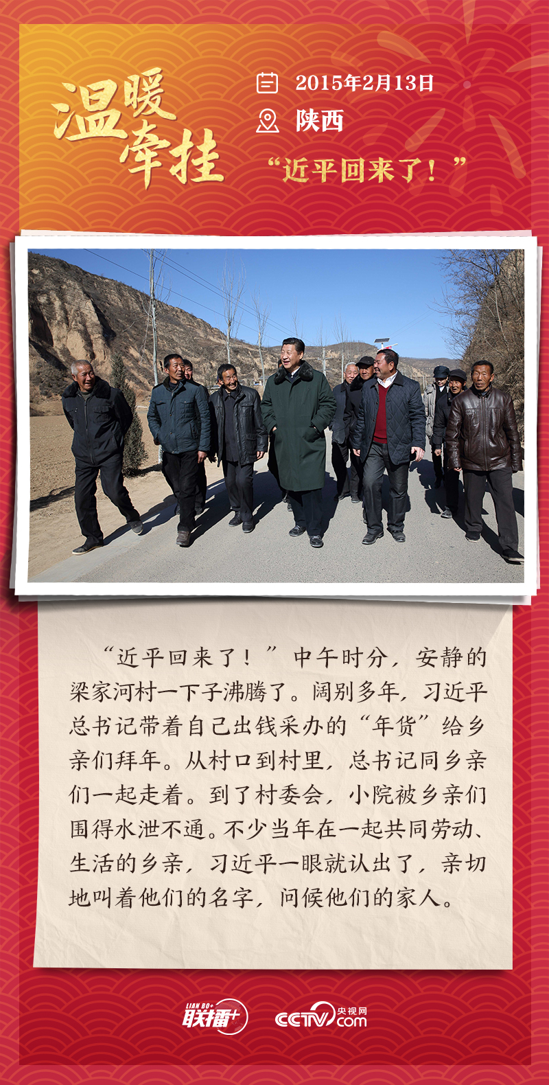 編者按:“大國之大,也有大國之重。千頭萬緒的事,說到底是千家萬戶的事。”從2013年起,每逢春節(jié)前夕,習(xí)近平總書記都會來到群眾身邊,拉家常、問冷暖,聽民聲、送祝福。央視網(wǎng)《聯(lián)播+》特推出“溫暖牽掛”系列,與您一同重溫總書記與大家在一起的溫暖故事,感受濃濃的領(lǐng)袖情懷。