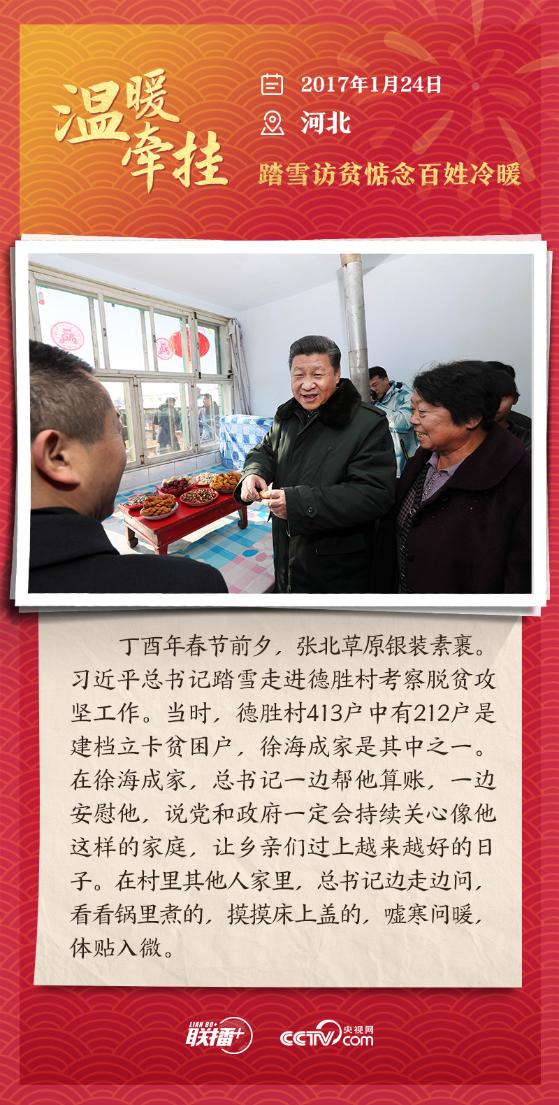 聯(lián)播+每到寒冬臘月,習(xí)近平總書記的身影都會如約出現(xiàn)在他牽掛的地方。翻過海拔3000多米的山梁,冒著零下30多攝氏度的嚴(yán)寒,轉(zhuǎn)換多種交通工具,一路顛簸、不辭辛苦,只為看到實情,“哪怕一天只看一個點”;貧困農(nóng)民、一線工人、孤寡老人、孤殘兒童……千千萬萬基層勞動者、普通老百姓,始終是他最牽掛的人。