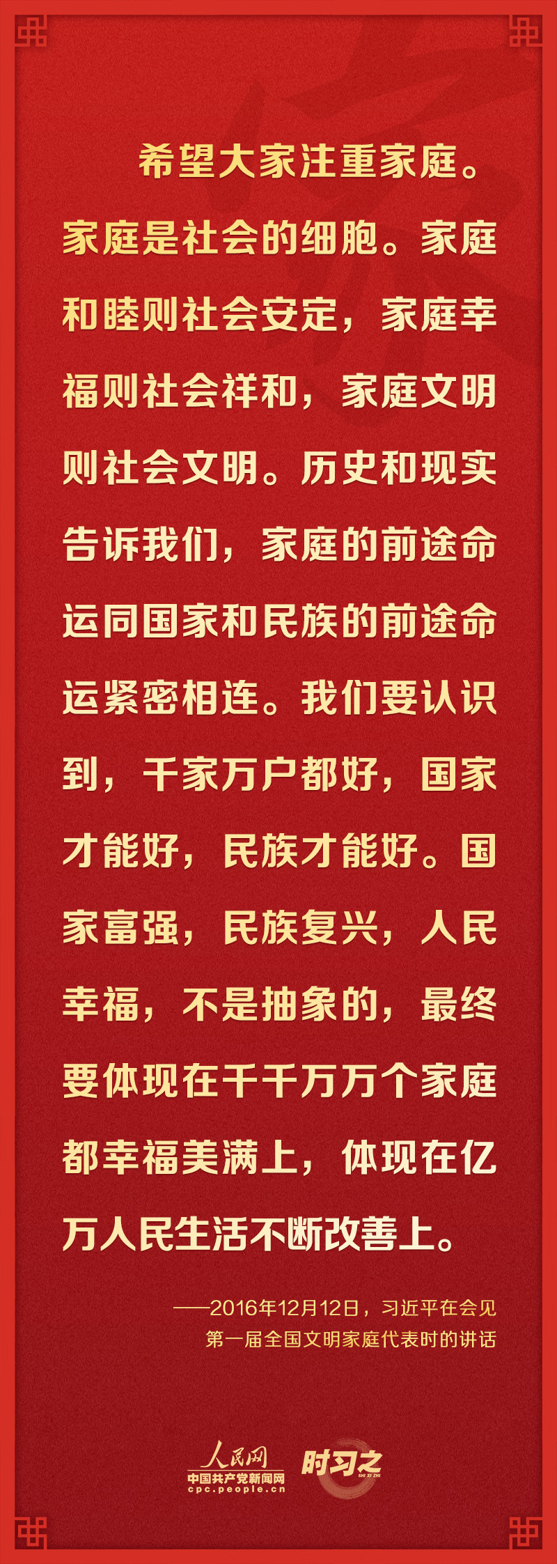 家是最小國,國是千萬家。習近平總書記多次在講話中談到“要推動全社會注重家庭家教家風建設(shè)”,身體力行倡導(dǎo)中華民族的優(yōu)良傳統(tǒng),推動社會主義核心價值觀在家庭落地生根。