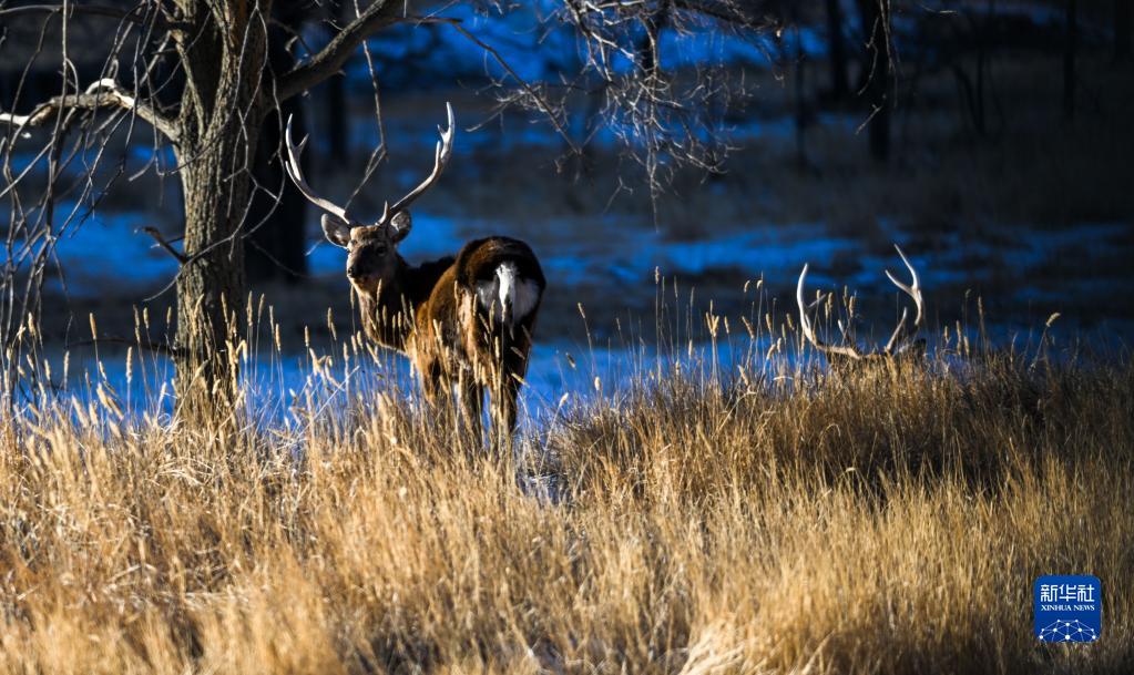 1月29日,一只馬鹿在灤河源國(guó)家森林公園內(nèi)覓食。新華社記者 劉懿德 攝