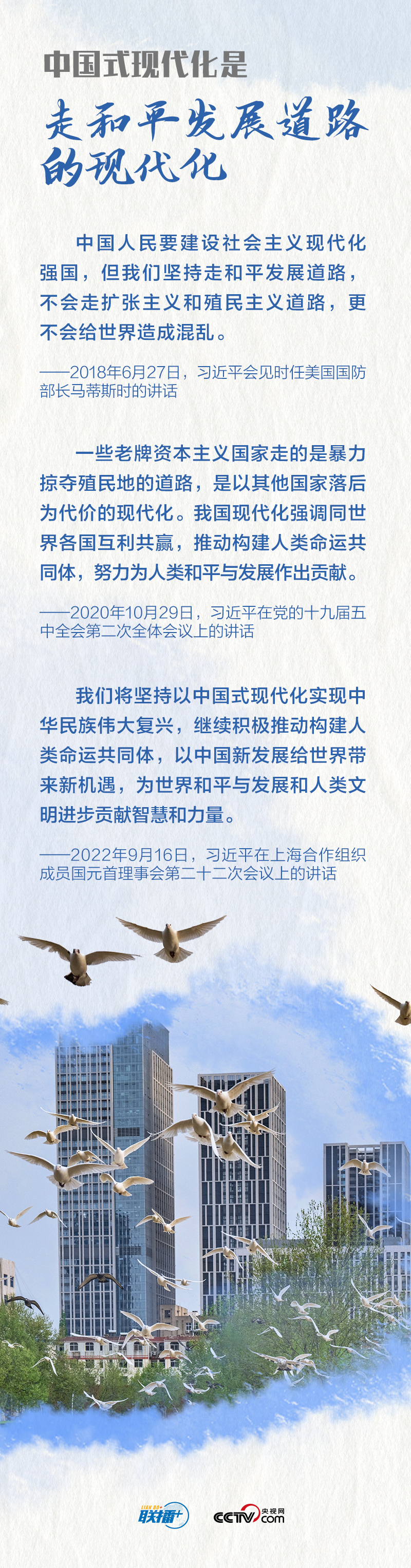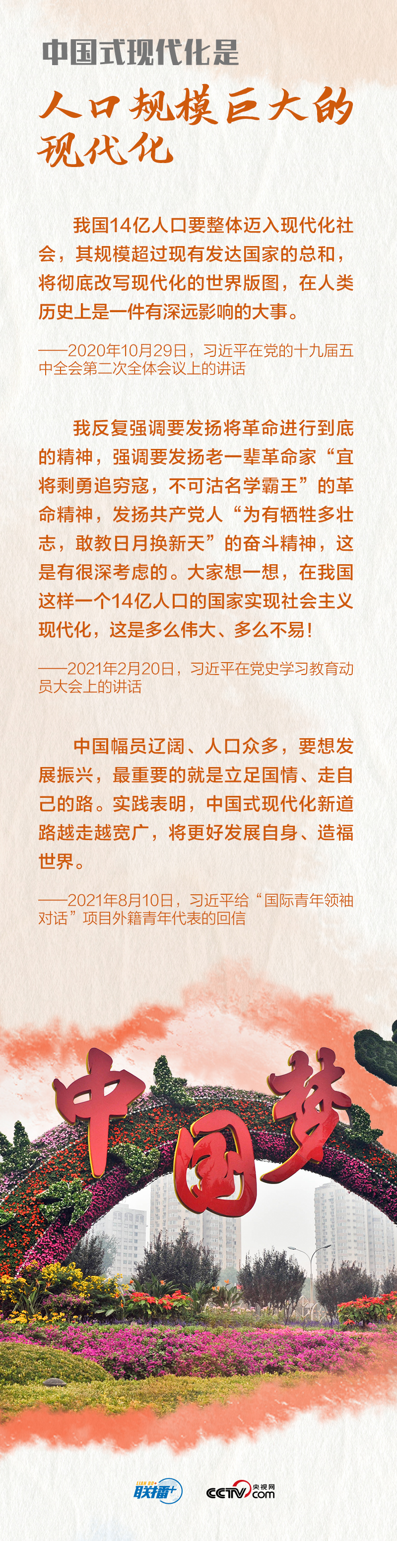 中國(guó)式現(xiàn)代化,是中國(guó)共產(chǎn)黨領(lǐng)導(dǎo)的社會(huì)主義現(xiàn)代化,既有各國(guó)現(xiàn)代化的共同特征,更有基于自己國(guó)情的中國(guó)特色。這些年,習(xí)近平總書(shū)記在不同場(chǎng)合多次深入闡釋中國(guó)式現(xiàn)代化,央視網(wǎng)《聯(lián)播+》梳理相關(guān)重要論述,與您一起學(xué)習(xí)。