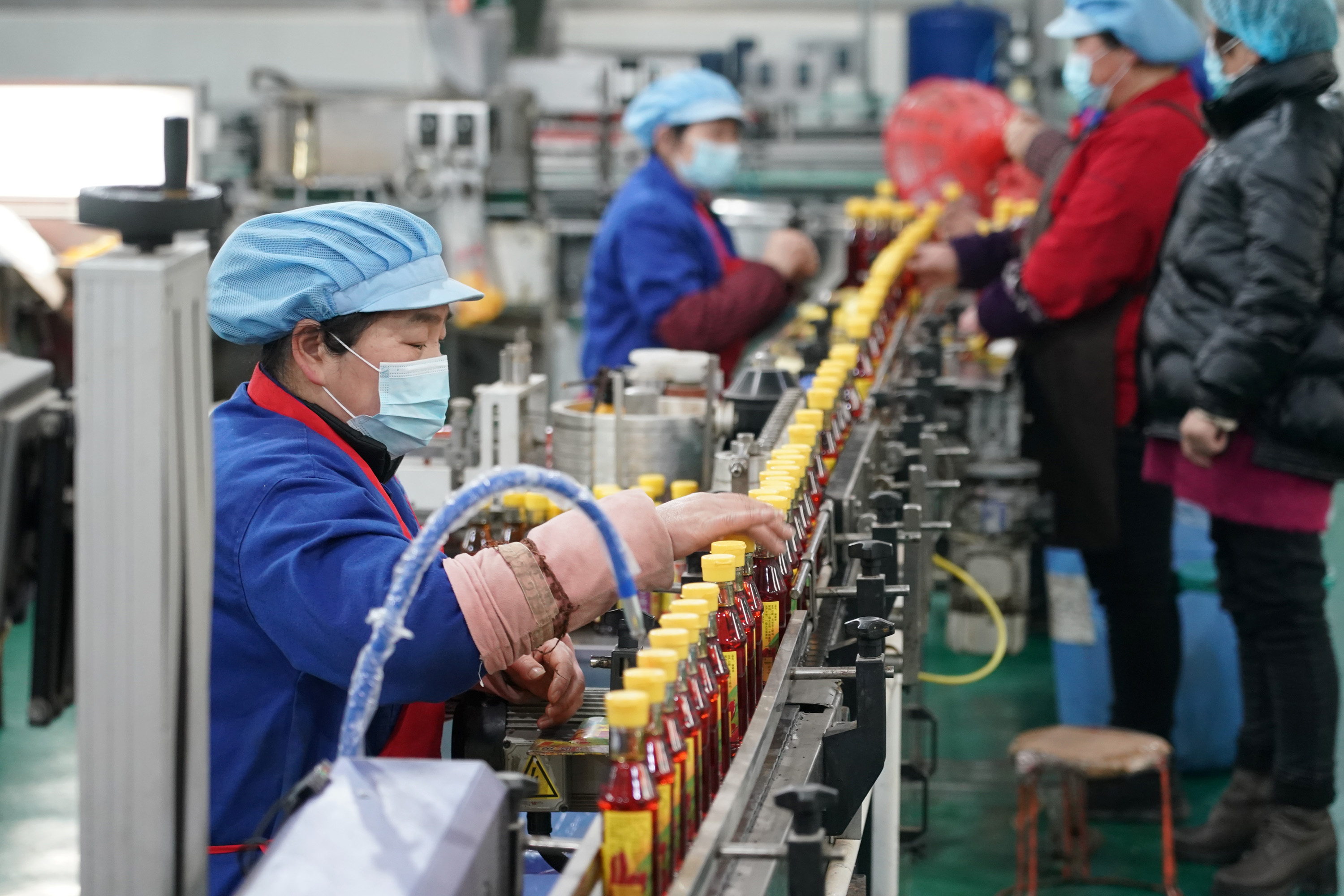 2月10日,陜西省三原縣西陽(yáng)鎮(zhèn)一家香油企業(yè)的工人在車間包裝線上工作。 新華社記者 邵瑞 攝