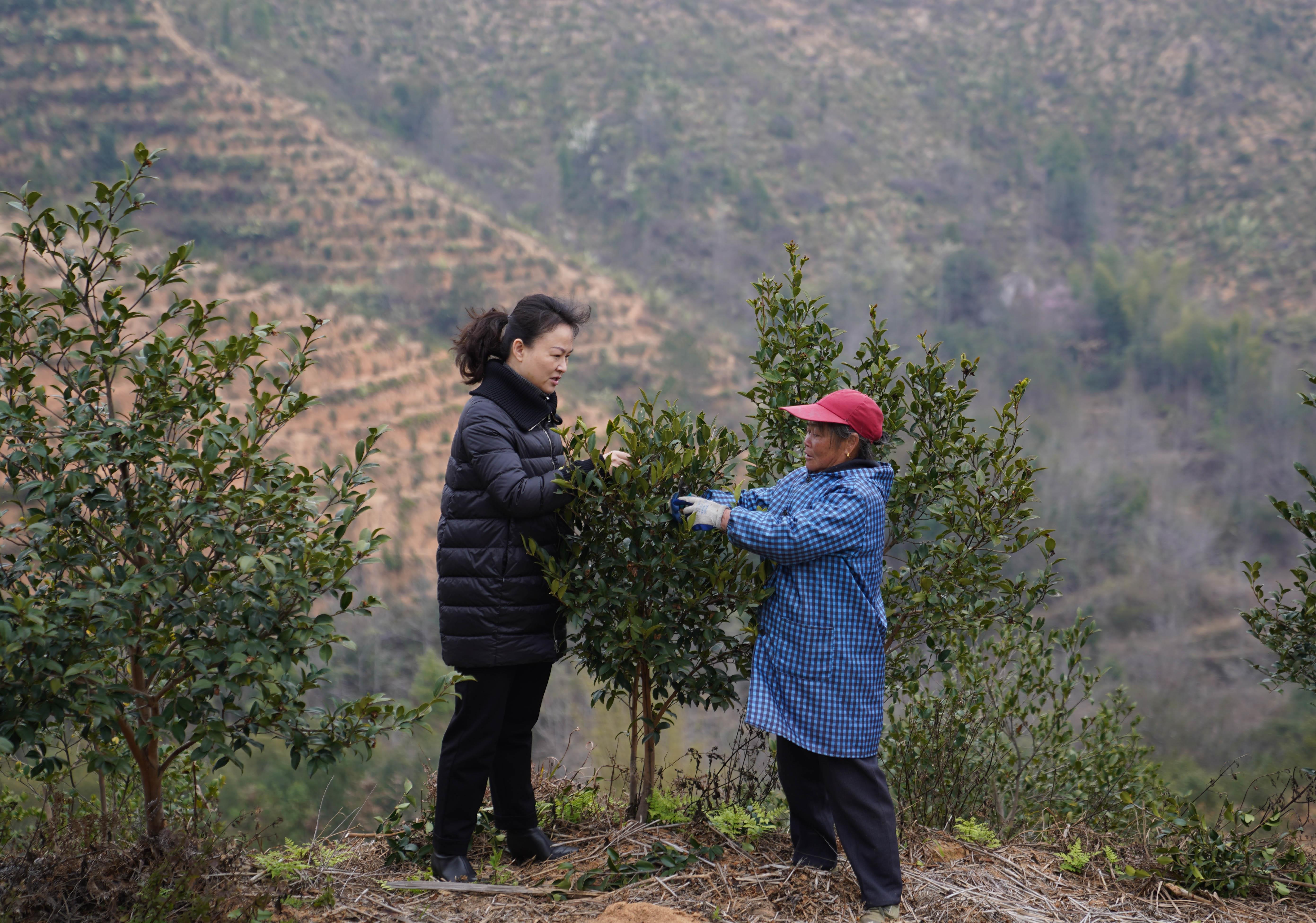 2月24日,在位于江西贛州市經(jīng)開區(qū)湖邊鎮(zhèn)蛤湖村的白石下油茶基地,農(nóng)戶在修剪植株。新華社記者 周密 攝