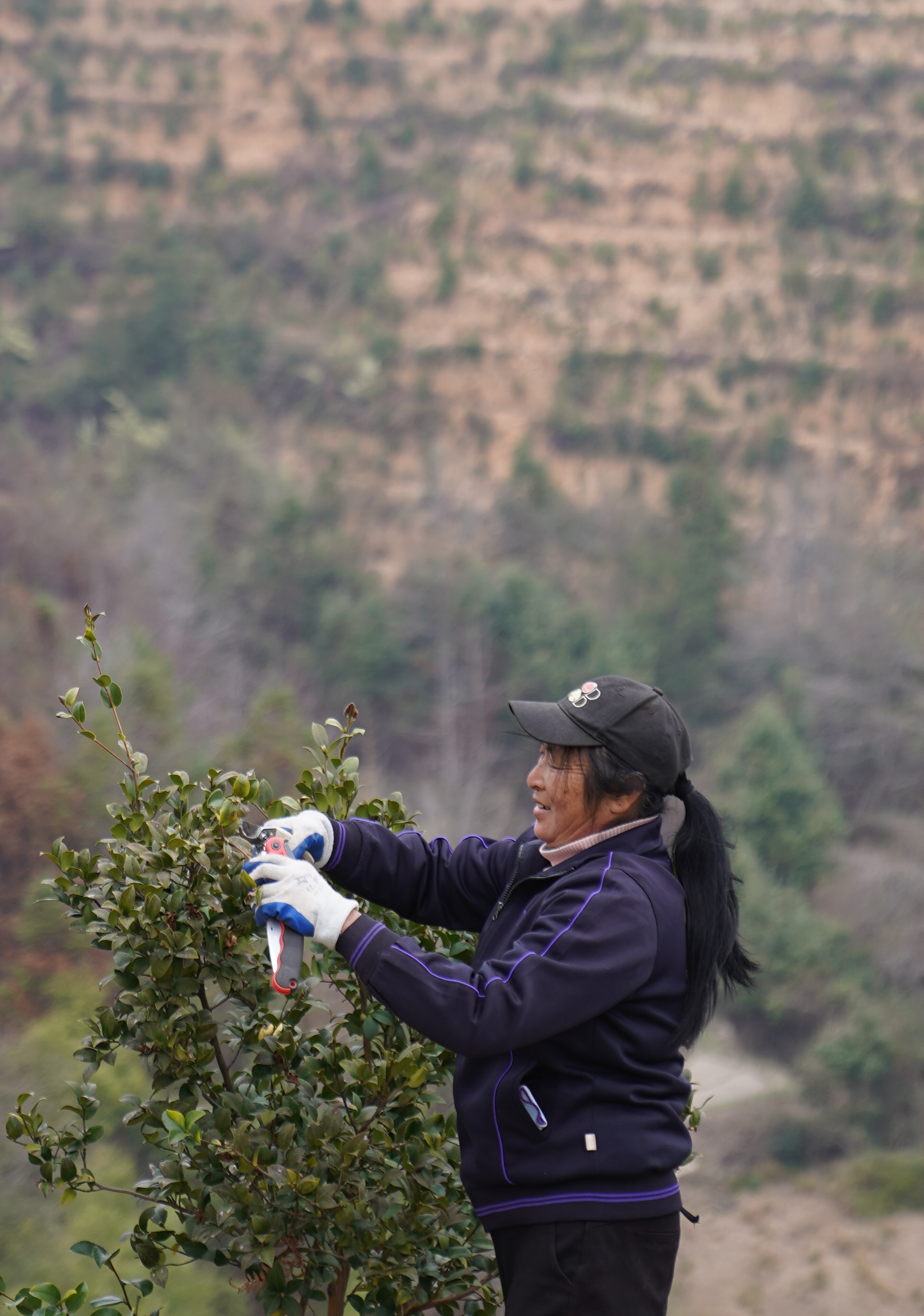 2月24日,在位于江西贛州市經(jīng)開區(qū)湖邊鎮(zhèn)蛤湖村的白石下油茶基地,農(nóng)戶在修剪植株。新華社記者 周密 攝