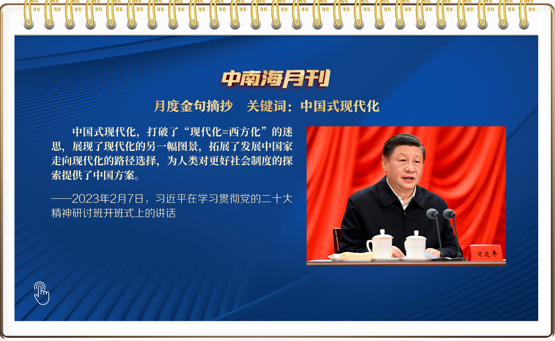 2月7日,習(xí)近平總書(shū)記第10次在專(zhuān)題研討班開(kāi)班式上主講“新年第一課”。面對(duì)“關(guān)鍵少數(shù)”的“關(guān)鍵一課”,總書(shū)記從學(xué)習(xí)貫徹黨的二十大精神的關(guān)鍵點(diǎn)“破題”,深入闡釋了中國(guó)式現(xiàn)代化這一重大命題。