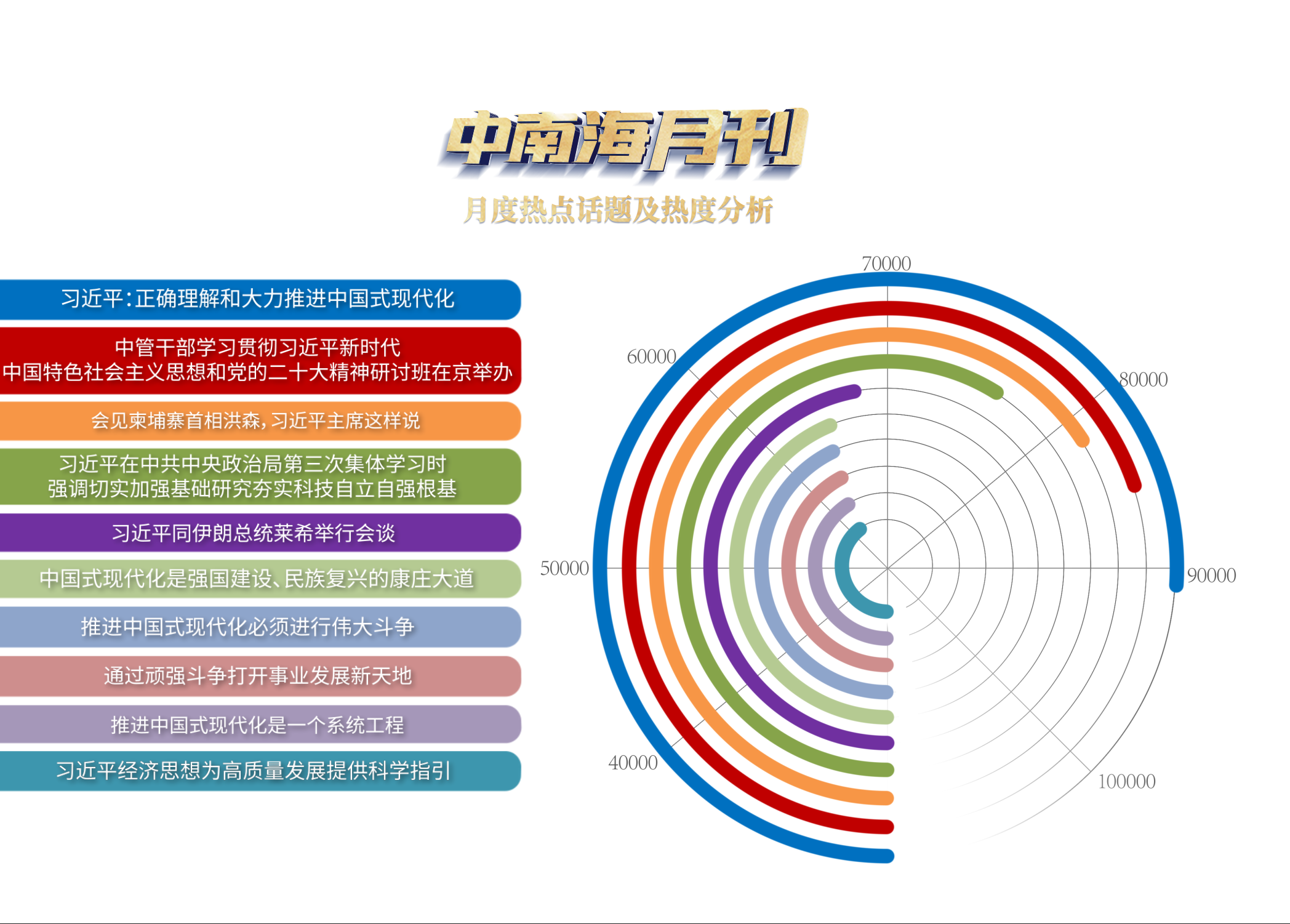 2023年是全面貫徹黨的二十大精神的開(kāi)局之年,是實(shí)施“十四五”規(guī)劃承前啟后的關(guān)鍵一年,也是全面建設(shè)社會(huì)主義現(xiàn)代化國(guó)家開(kāi)局起步的重要一年。央視網(wǎng)“智聞”系統(tǒng)提取分析2023年2月全網(wǎng)時(shí)政新聞熱點(diǎn)發(fā)現(xiàn),本月“學(xué)習(xí)貫徹黨的二十大精神研討班開(kāi)班式”等相關(guān)話題備受網(wǎng)友關(guān)注。