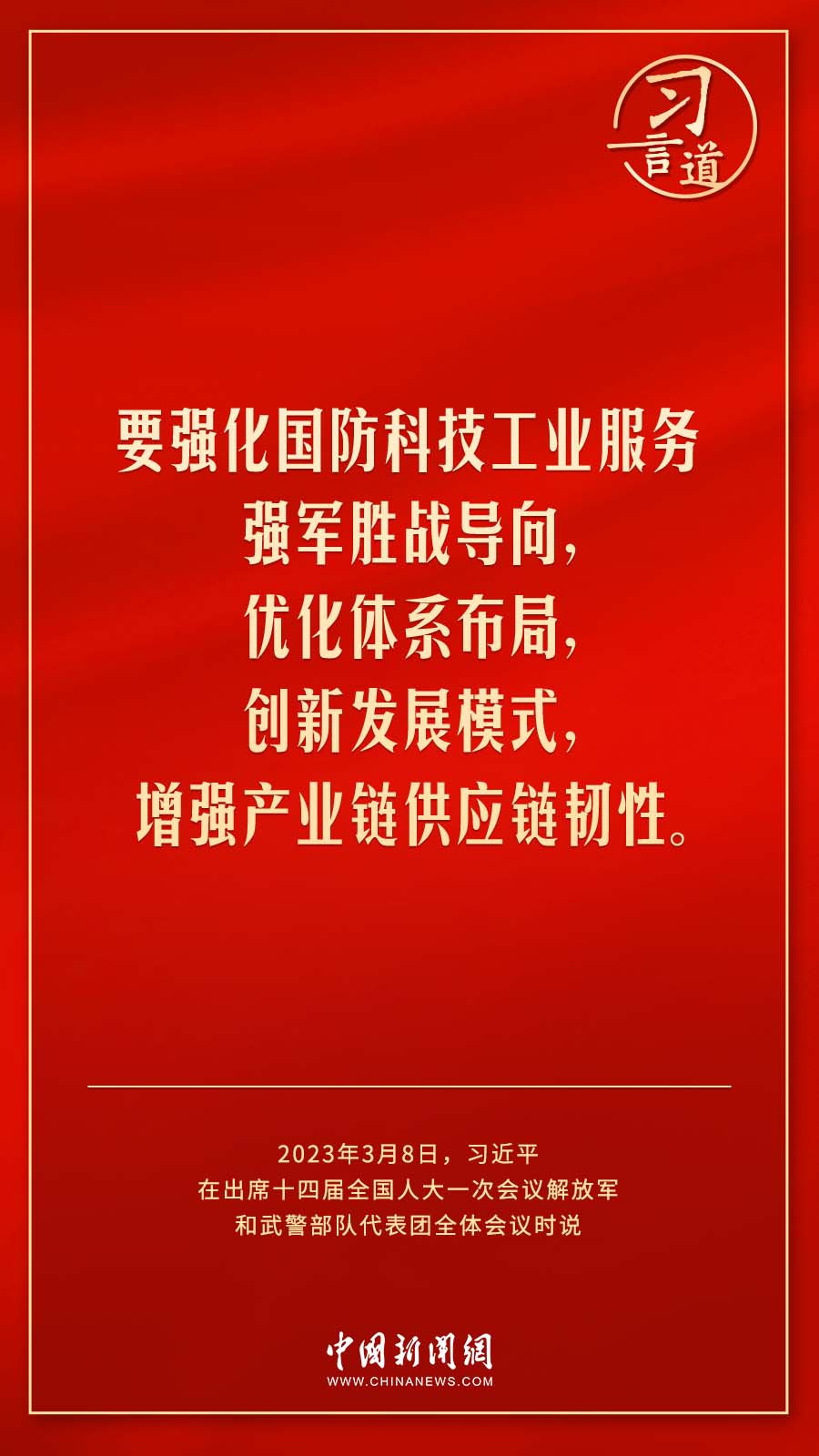 中共中央總書記、國家主席、中央軍委主席習(xí)近平8日下午在出席十四屆全國人大一次會議解放軍和武警部隊代表團(tuán)全體會議時說——