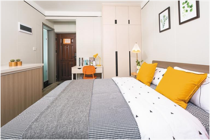 除了租金十分優(yōu)惠外,安居·樂筑(涇渭店)的房屋品質也令人驚喜。項目外墻有一幅巨大的墻體彩繪,以明麗鮮艷的色彩和青年人逐夢筑家的主題,吸引了不少年輕住戶圍觀打卡。項目公共區(qū)域提供閱讀、游戲、觀影、健身、共享美食、會議商談等多種功能,同時在每一層設有共享廚房,租客入住后可以實現(xiàn)“做飯自由”,充分享受家的溫馨。走進安居·樂筑(涇渭店)的房間內,裝修裝飾以暖白色、橘色為主色調,搭配同色系的床品、沙發(fā)、餐具、書桌等,層次感十足,同時配備洗衣機、冰箱、空調等家電,充滿生活氣息。“整棟樓都是統(tǒng)一戶型、統(tǒng)一裝修,品質很有保障。”安居·樂筑(涇渭店)負責人介紹,申請人入住后不能對房間進行破壞結構的改動,如拆承重墻等,但可以按自己的喜好對房間進行軟裝布置,如綠植、布藝等。無論是從視覺形象到產品服務,安居·樂筑(涇渭店)都致力于成為新市民和青年人溫馨、精致的“北跨”之家。
