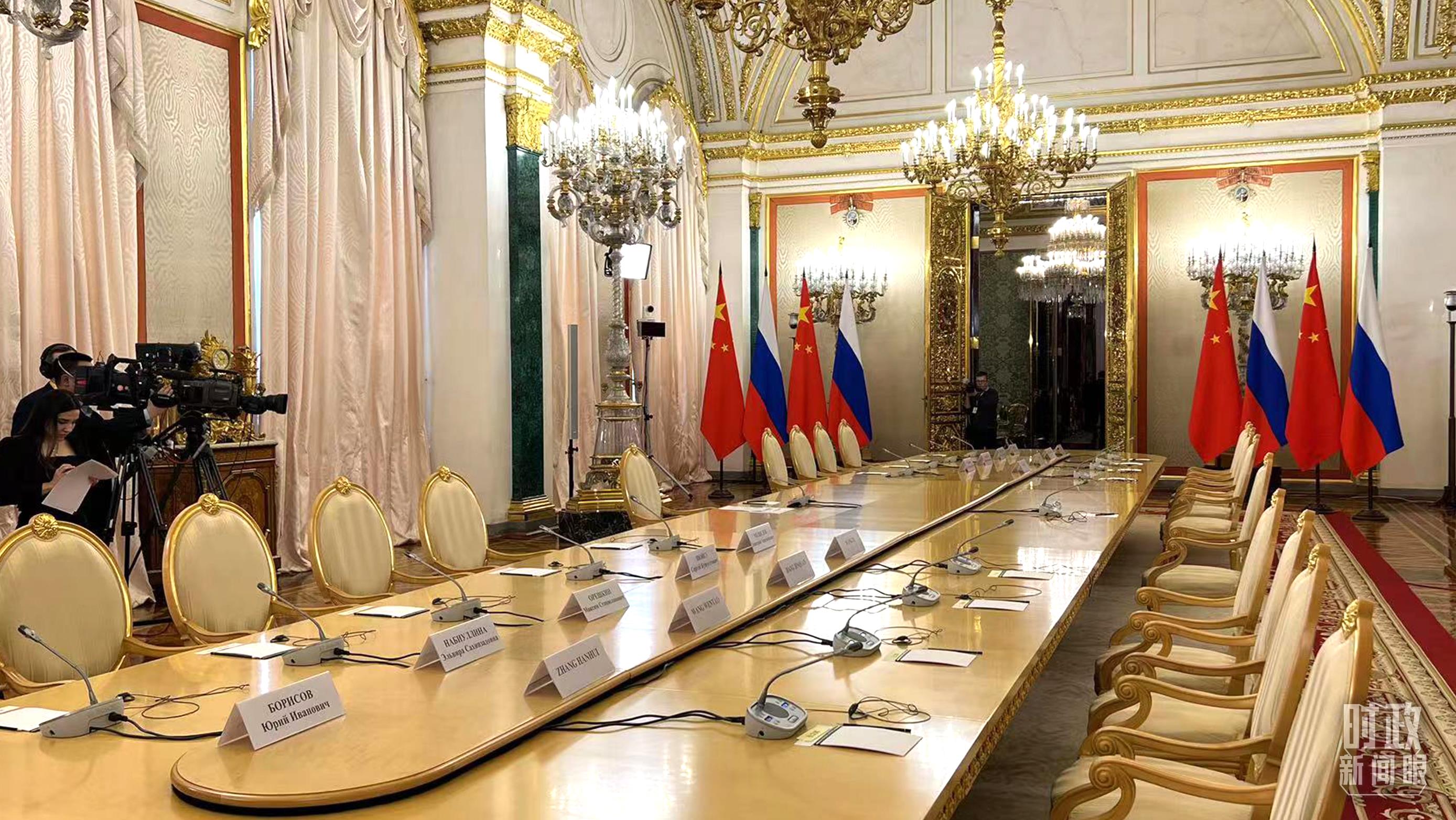 △習(xí)主席和普京總統(tǒng)舉行大范圍會談的會場。(總臺央廣記者潘毅拍攝)