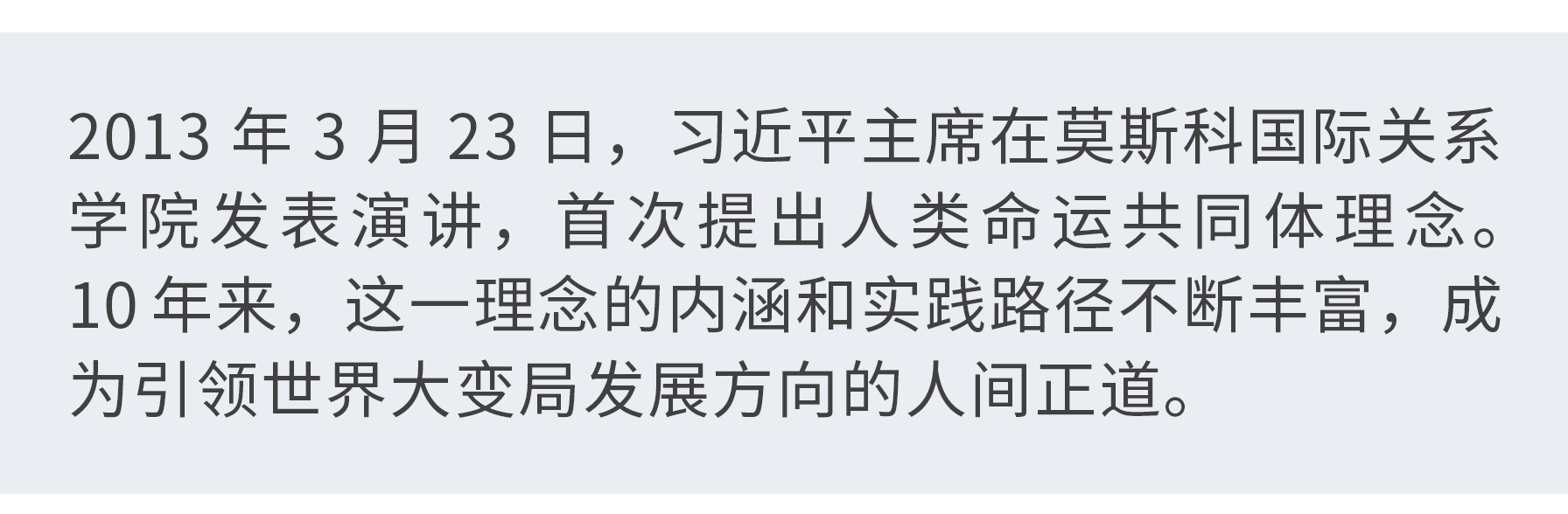 “我們兩國要永做好鄰居、好朋友、好伙伴”。10年前,當選國家主席后首次出訪,習近平在莫斯科國際關(guān)系學院發(fā)表演講時這樣說道。也正是在這次演講中,習近平主席首次提出人類命運共同體理念。