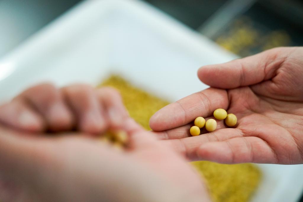 3月14日,農(nóng)業(yè)技術(shù)員在進(jìn)行大豆品種發(fā)芽試驗(yàn)。新華社記者 王松 攝