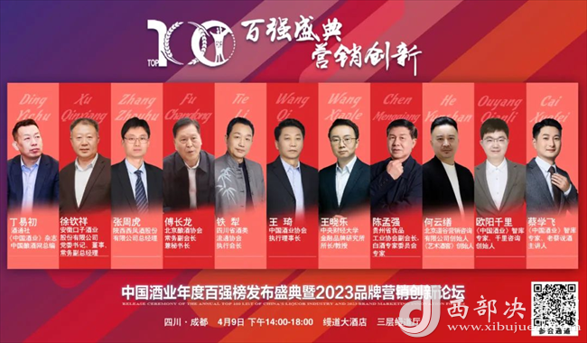 西部決策網(wǎng)訊(記者劉玉 韓宗憲)聚焦中國(guó)酒業(yè)百?gòu)?qiáng)群英,助力品牌營(yíng)銷創(chuàng)新管理。4月9日,中國(guó)酒業(yè)年度百?gòu)?qiáng)榜發(fā)布盛典暨2023品牌營(yíng)銷創(chuàng)新論壇在成都盛大開啟。行業(yè)各協(xié)會(huì)領(lǐng)導(dǎo)、智庫(kù)專家、意見領(lǐng)袖及全國(guó)200家企業(yè)和經(jīng)銷商代表,共同見證行業(yè)百?gòu)?qiáng)與酒業(yè)營(yíng)銷人的風(fēng)采。