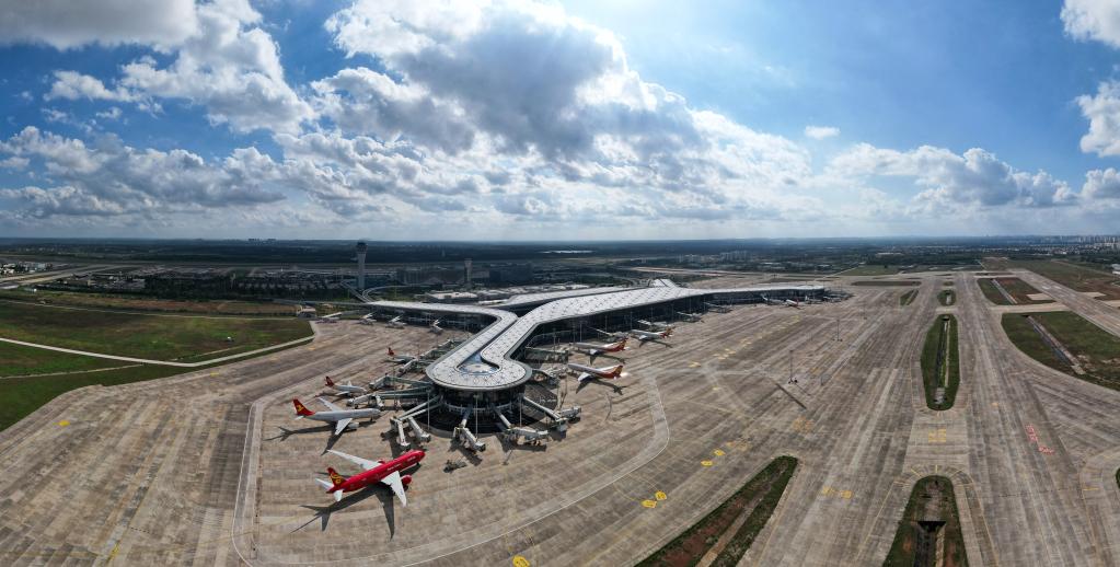這是2021年11月20日拍攝的海口美蘭國際機場二期項目(無人機照片)。新華社記者 楊冠宇 攝