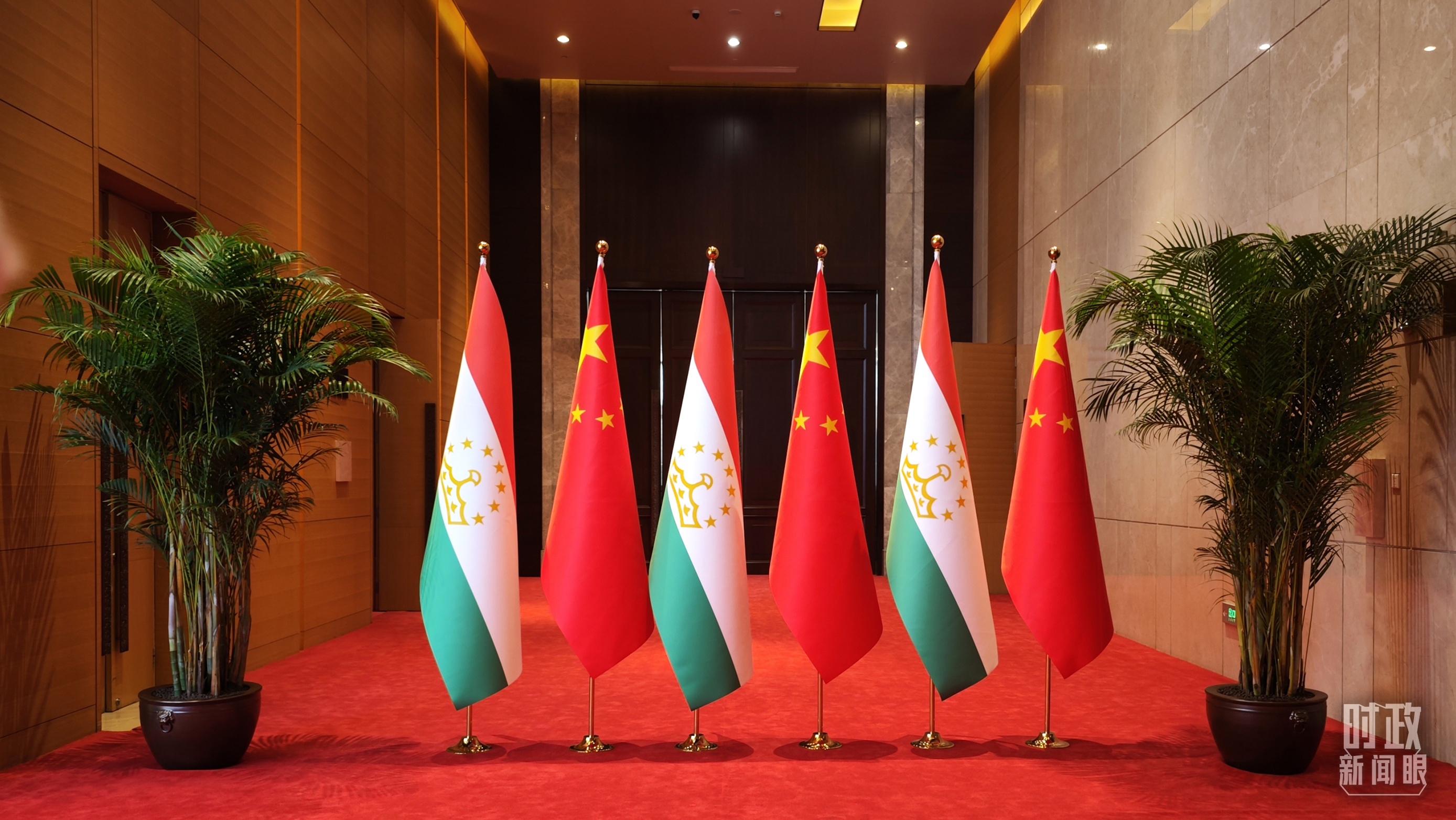 △中塔元首會(huì)談現(xiàn)場(chǎng)外布置的兩國(guó)國(guó)旗。(總臺(tái)央廣記者潘毅拍攝)