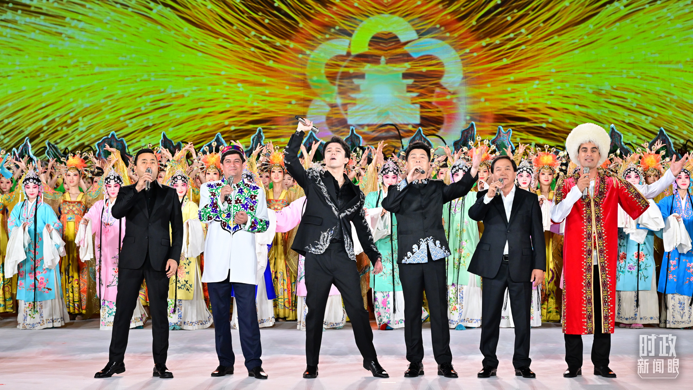 △來(lái)自中國(guó)和中亞五國(guó)的歌手聯(lián)袂演唱《美美與共》。(總臺(tái)記者孫楠拍攝)