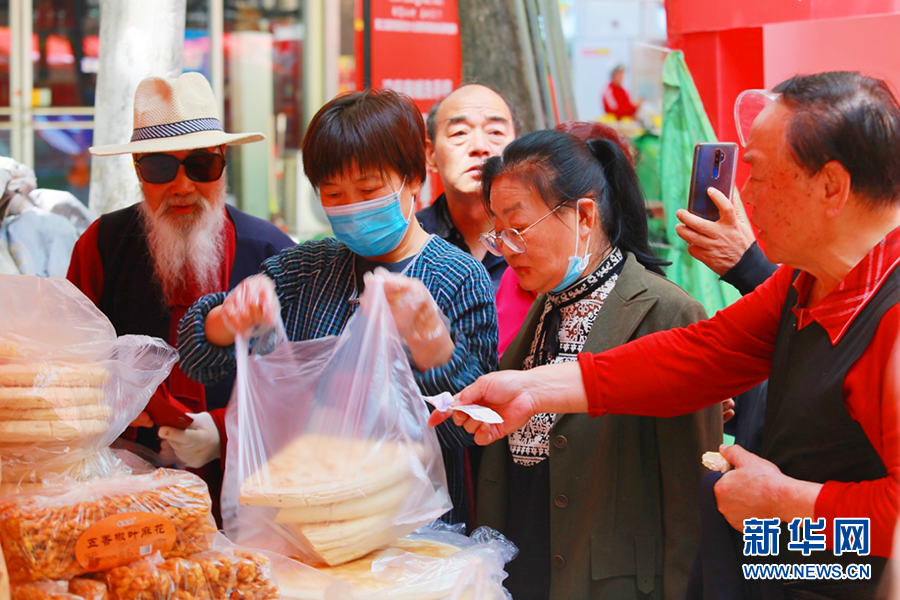 在第三屆陜西面食大會(huì)現(xiàn)場(chǎng),觀眾購買面食鍋盔。新華網(wǎng) 楊喜龍 攝