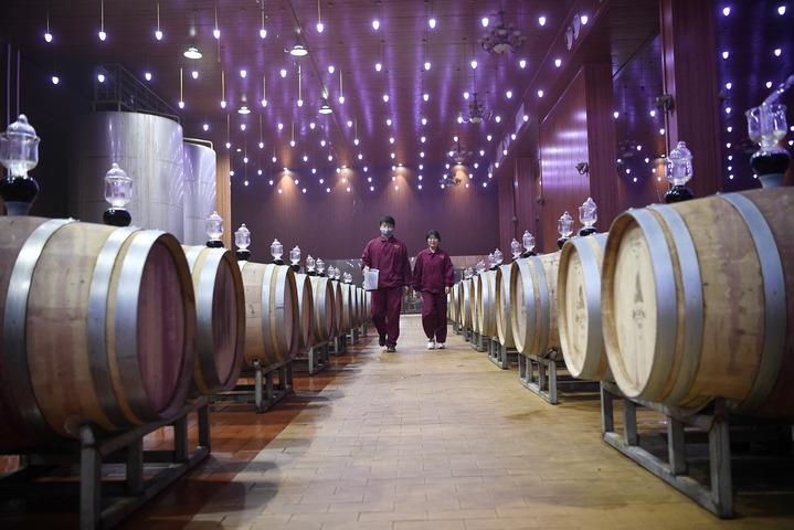 風(fēng)從賀蘭山深處吹來,拂過山腳下一眼難望到頭的葡萄園。一座占地面積達(dá)5000平方米的酒窖里,自動(dòng)化設(shè)備保持四季恒溫恒濕,2000個(gè)橡木桶鱗次櫛比,國際葡萄酒大賽獲獎(jiǎng)證書一個(gè)挨著一個(gè),擺滿了十幾米長的陳列架。