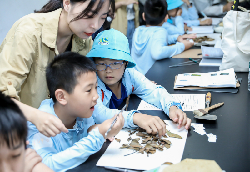 學(xué)生正在用心探究樹葉品種(錢江源國(guó)家公園管理局供圖)
