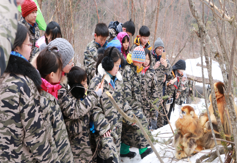 學(xué)生研學(xué)走進(jìn)神農(nóng)架國(guó)家公園大龍?zhí)督鸾z猴基地(神農(nóng)架國(guó)家公園管理局供圖)
