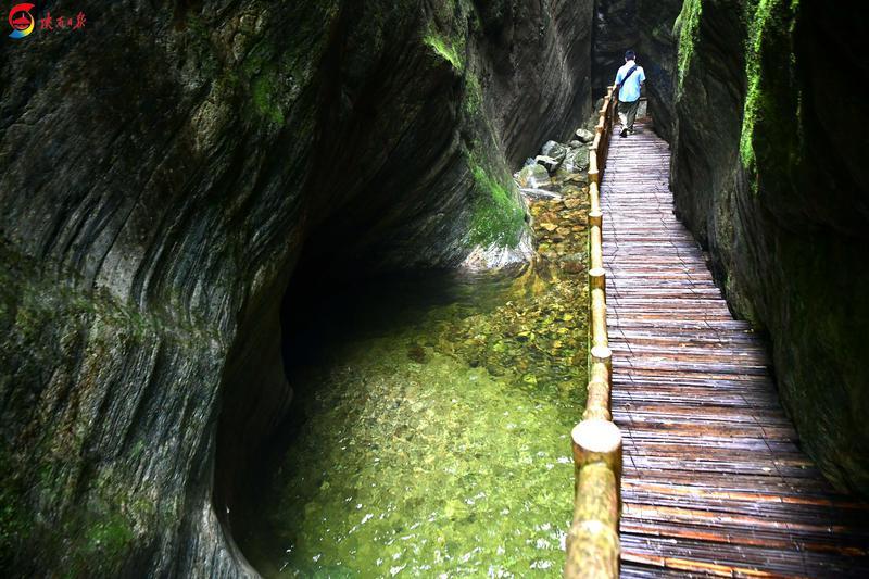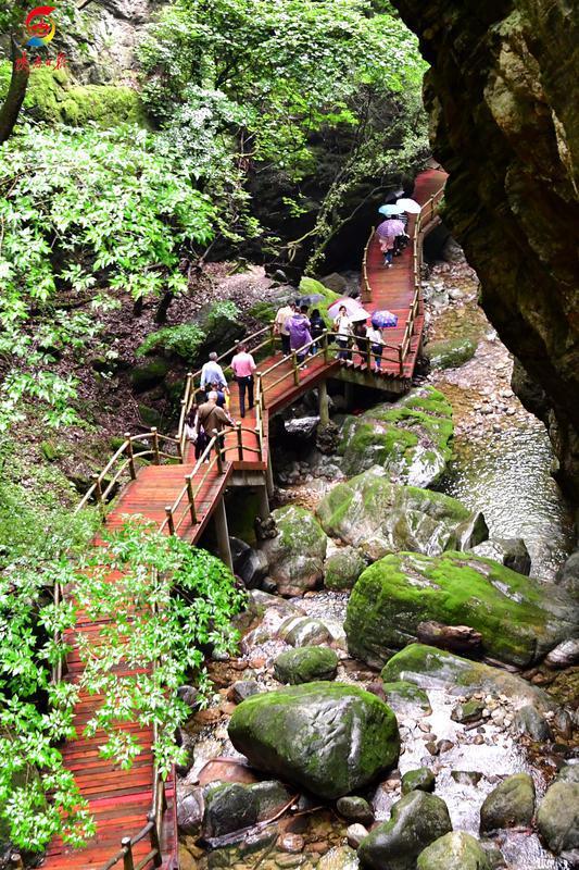 景區(qū)內(nèi),奇險峽谷,清流飛澗,匯聚了山水靈秀之美。蒼郁古樹,山泉婉轉(zhuǎn),鬼斧神工的波光水色,如詩如畫的景致讓游客流連忘返。