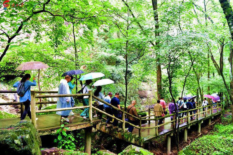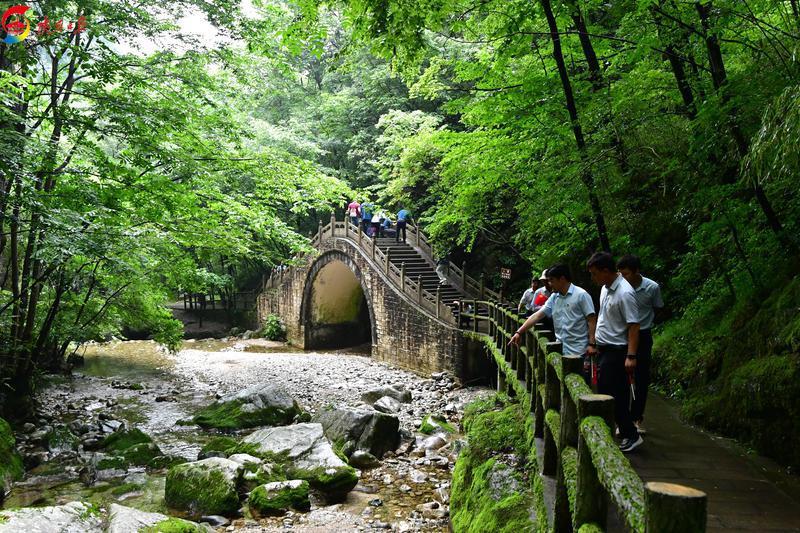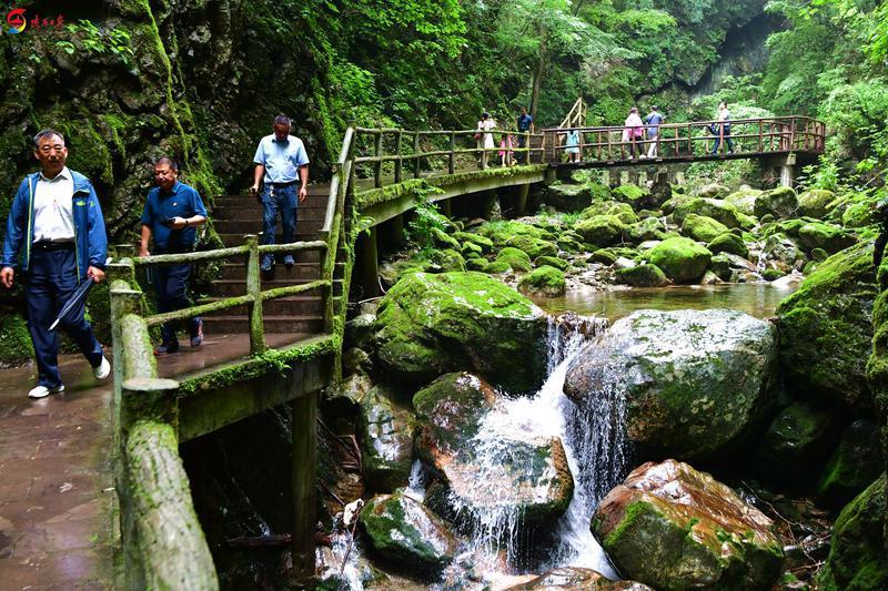 6月28日,位于商洛市柞水縣的牛背梁國家森林公園景區(qū)內(nèi)游人如織。這里山色青翠,溪水潺潺,行道兩旁景色宜人。