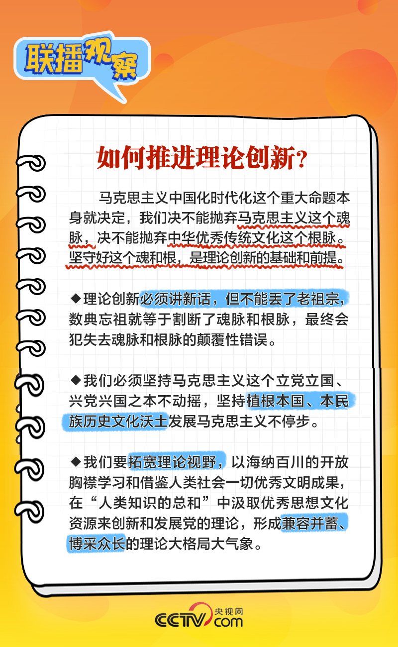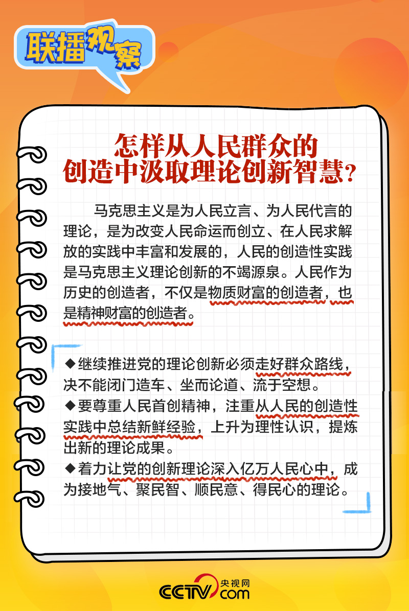如何開辟馬克思主義中國化時(shí)代化新境界?理論創(chuàng)新的基礎(chǔ)和前提是什么?怎樣從人民群眾的創(chuàng)造中汲取理論創(chuàng)新智慧?央視網(wǎng)《聯(lián)播+》梳理總書記主持學(xué)習(xí)時(shí)的講話,與您一起學(xué)習(xí)。