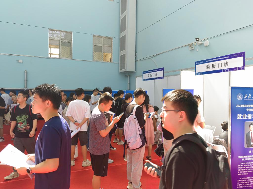 西北工業(yè)大學(xué)舉辦的招聘會上,學(xué)生在簡歷門診咨詢。