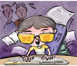 可好景不長,“雙雙”因?yàn)榇蛴螒驎r(shí)間過長,學(xué)習(xí)成績一塌糊涂,經(jīng)常被老師拉去單獨(dú)談話。但她對老師的批評左耳朵進(jìn)右耳朵出,回家后仍是將書包一扔,熟練地啟動(dòng)電腦開始打游戲。