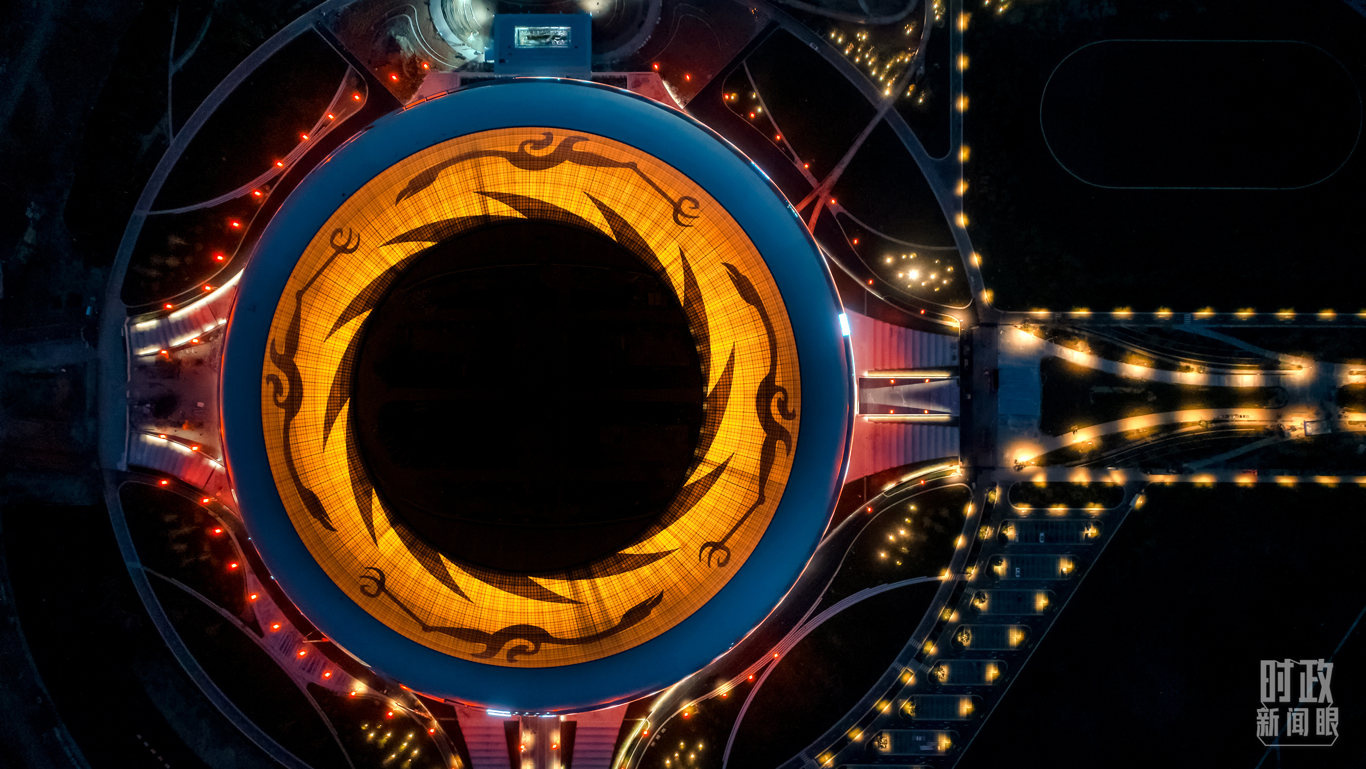 主體育場頂部,是由12540塊彩釉玻璃拼裝成總面積約27000平方米的“太陽神鳥”圖案。從開幕式倒計時,到主火炬塔點燃,這一古蜀文化代表性符號和中國文化遺產(chǎn)標志貫穿始終。