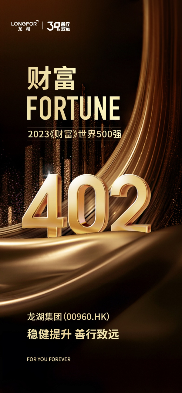 8月2日,2023年《財(cái)富》世界500強(qiáng)排行榜發(fā)布,憑借2022年收入、利潤的穩(wěn)健增長,龍湖集團(tuán)連續(xù)三年入圍榜單,排名持續(xù)提升第402位。