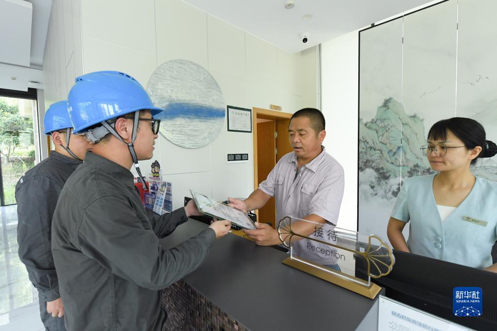 8月11日,電力工作人員給余村的一家酒店頒發(fā)綠證。