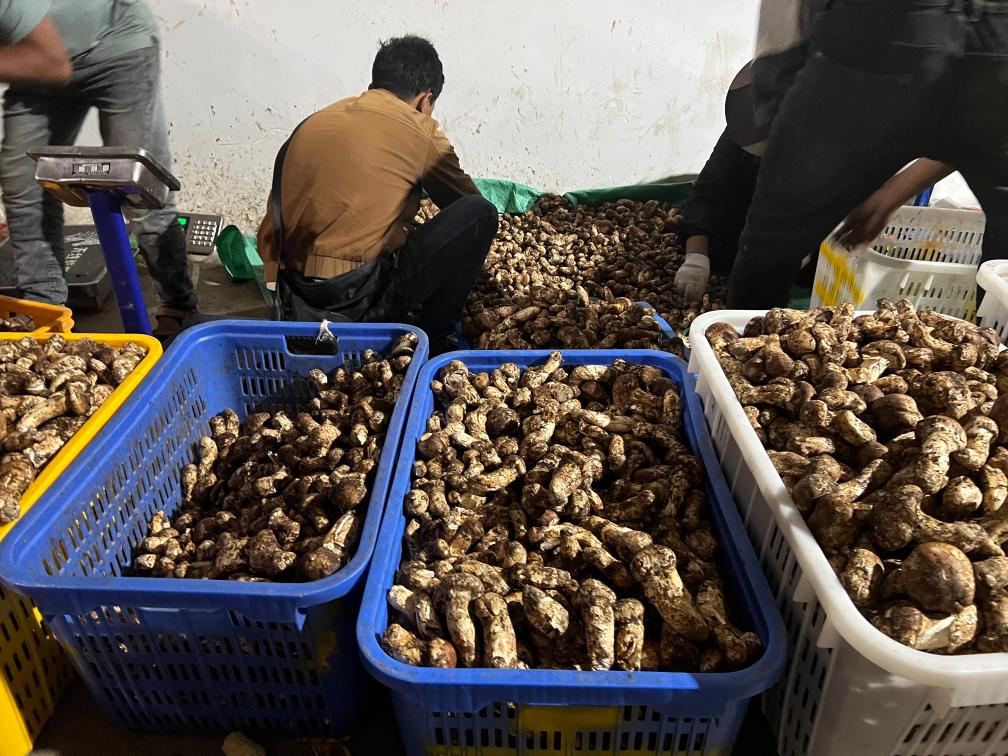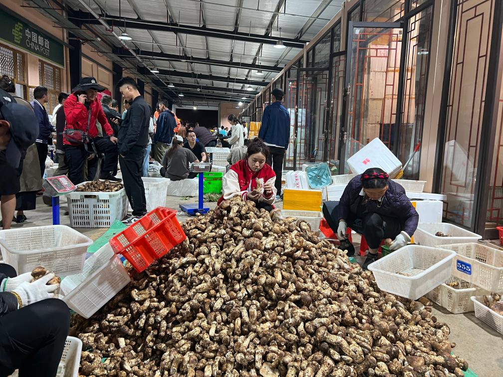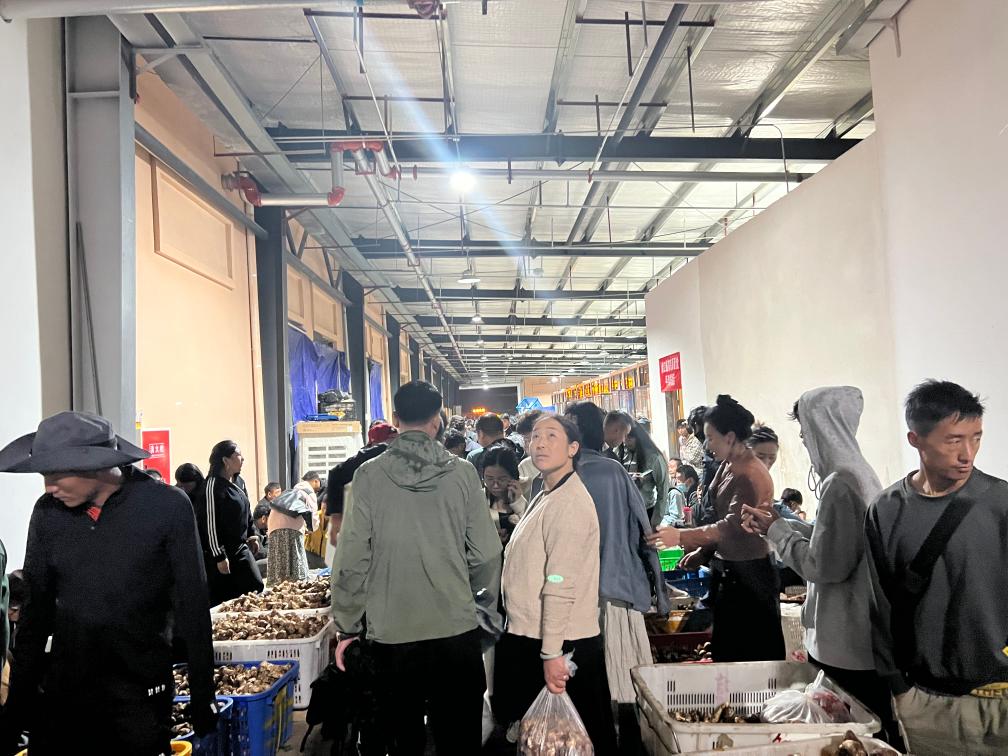 晚上11時,記者走進(jìn)當(dāng)?shù)厮扇捉灰资袌?,看到客商云集,門店前滿是用松茸堆成的小山。雖已入夜,市場內(nèi)人聲鼎沸,商戶達(dá)瓦央宗熱情地拉住記者,推銷自家采摘的松茸。詢問得知,這段時間,她和家人每天凌晨3點半摸黑出門,沿著山道來到家附近的青杠林采摘新鮮松茸,然后來市場交易,有時一忙就要持續(xù)到深夜。“一個松茸季下來,家里能增加五六萬元的收入。”