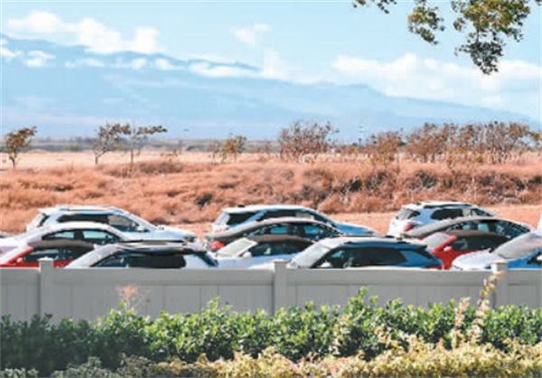 8月24日,美國(guó)夏威夷毛伊島卡胡盧伊機(jī)場(chǎng)外的一片空地上停放著租車公司沒有租出去的汽車。