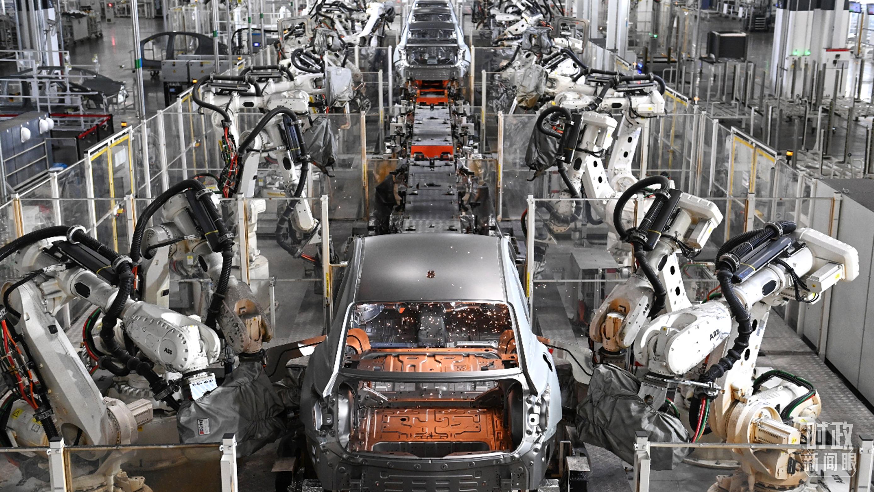 △中國一汽紅旗制造中心,全自動機械手臂正在進行車體焊裝。(圖/視覺中國)