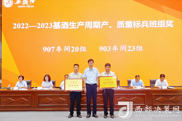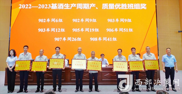 會上,張周虎宣讀了《關(guān)于對2022—2023基酒生產(chǎn)周期產(chǎn)質(zhì)量勞動競賽獲獎車間、班組進(jìn)行表彰獎勵的決定》。與會領(lǐng)導(dǎo)為受表彰的獲獎車間、班組頒發(fā)獎牌。