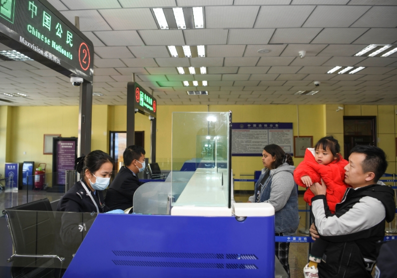 2023年8月29日,準(zhǔn)備前往巴基斯坦探親的跨國夫婦鄭銀果、索娜帶著女兒辦理通關(guān)手續(xù)。