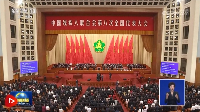 人民大會堂大禮堂燈光璀璨,氣氛隆重?zé)崃?。主席臺上方懸掛著“中國殘疾人聯(lián)合會第八次全國代表大會”的會標(biāo),后幕正中的中國殘聯(lián)會徽格外醒目,10面紅旗分列兩側(cè)。二樓眺臺上懸掛著“以習(xí)近平新時代中國特色社會主義思想為指導(dǎo),全面貫徹黨的二十大精神,團(tuán)結(jié)帶領(lǐng)廣大殘疾人在中國式現(xiàn)代化進(jìn)程中創(chuàng)造更加幸福美好的生活!”巨型橫幅。來自全國各地的600多名代表,肩負(fù)著約8500萬殘疾人的重托出席大會。