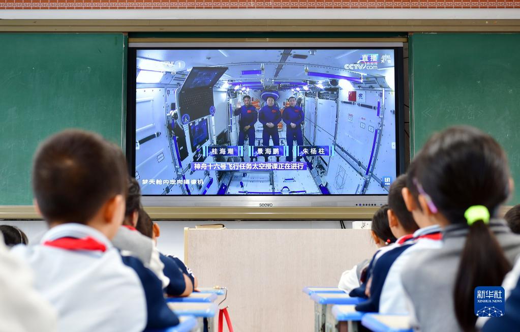9月21日,在湖北省宜昌市秭歸縣實(shí)驗(yàn)小學(xué),學(xué)生收看“天宮課堂”第四課。新華社發(fā)(王輝富攝)